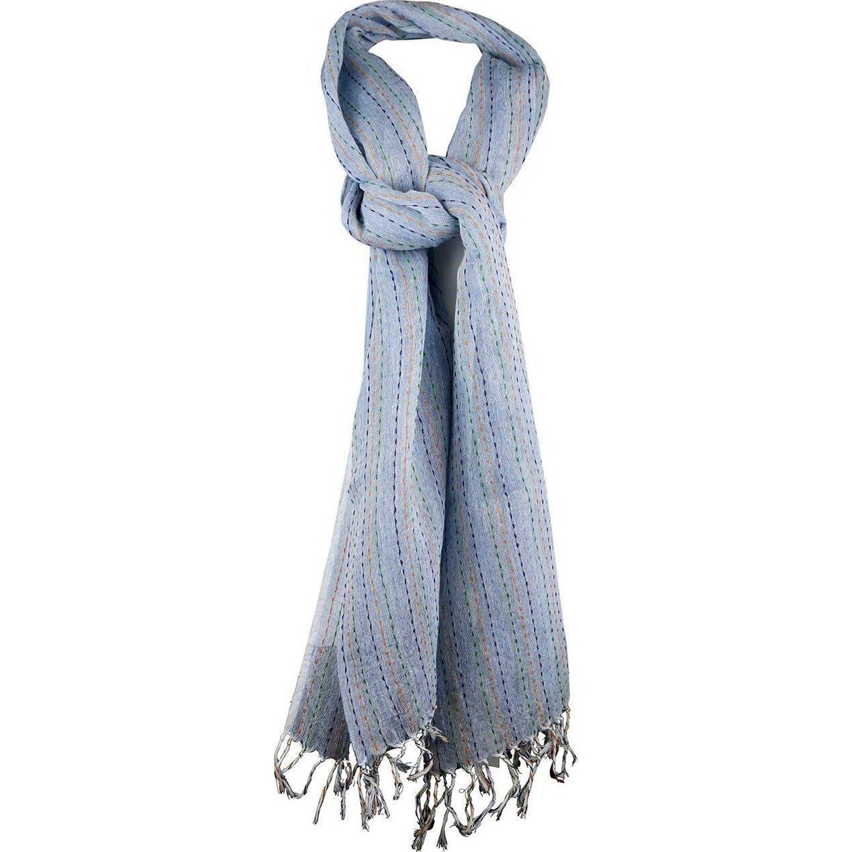 Each day you desire to look your best - there is not discounting the fact that you dressing will vary as per the occasion and the way you want to look - but the one accessory which helps you change your look in the best possible way is the scarf - that ultimate accessory that can help protect you from the harsh sun and at the same time when draped elegantly round your neck gifts you with an ultra chic appearance. There is something most sober and sophisticated turning your formal look to informal or the informal to formal with a simple twist and knot of the look you wish to create. It is this ability of linen to gift you this stylizing ability that explains its immense popularity on the haute couture circuit as well as street fashion alike. This gorgeous light blue scarf has a self weave with black thread that lends it a certain texture and dimension that makes it a complete winner. about 180 cm long and 50 cm wide makes it just the right size to knot or drape in different ways. Add the dash of classic look to your everyday clothing by adding linen scarves in skin friendly material from Lavida.