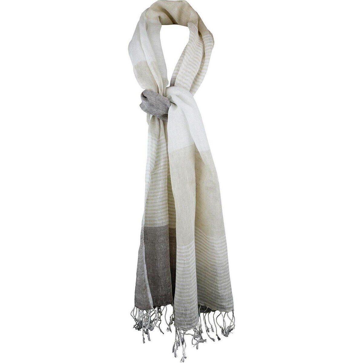 Dappled in shades of sand, the delicate colours uplifting both for summer and winter dressing, this 180 cm long scarf can be worn in multiple ways and will add so much of resonance to your clothing that soon it should be your fashion staple. Having wowed the worked with its eclectic looks, the linen scarf is here to stay and there is no denying it presence. From fashion catwalks to the largest of designer stores, the world over this fashion necessity has now translated into one of the most prolific ways of styling your most casual to your most modern looks. This scarf could be worn as much by women as by men and that is what makes it so liable. The muted colours will allow pairing with all kinds of clothing. Sling over the shoulder, knotted or simply allowed to hang loose, you will love its look, feel and texture right away.