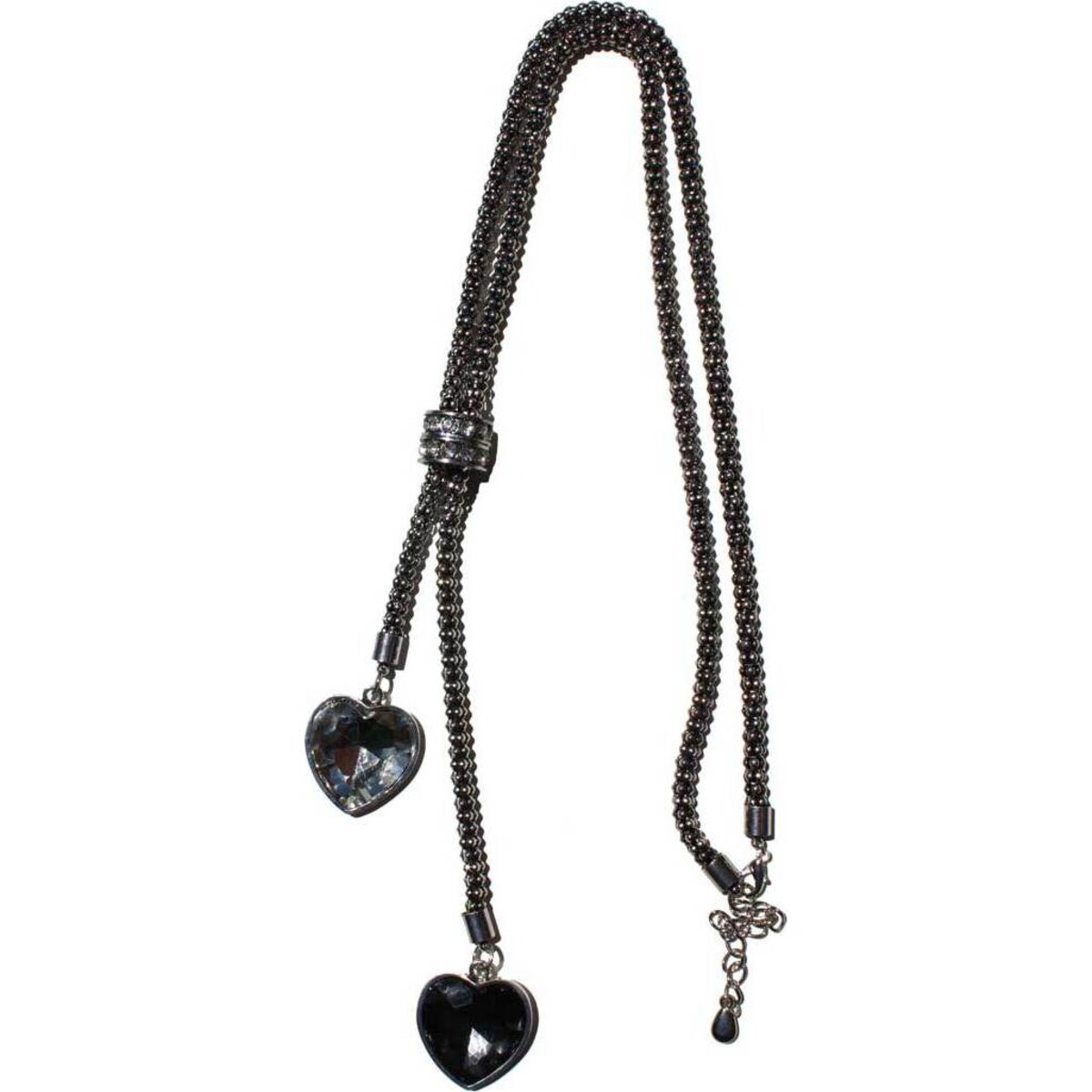 This stunning necklace consists of a pewter-coloured link necklace that has two large heart pendants dangling from the bottom. While it's certainly a statement piece and guaranteed to get plenty of compliments, it's not so large that it's going to overwhelm you or look awkward. Although everyone will be whispering about how expensive it looks, you'll know you didn't have to spend a fortune to get a lot of style. Let them think what they want. Don't worry, we'll keep your secret.