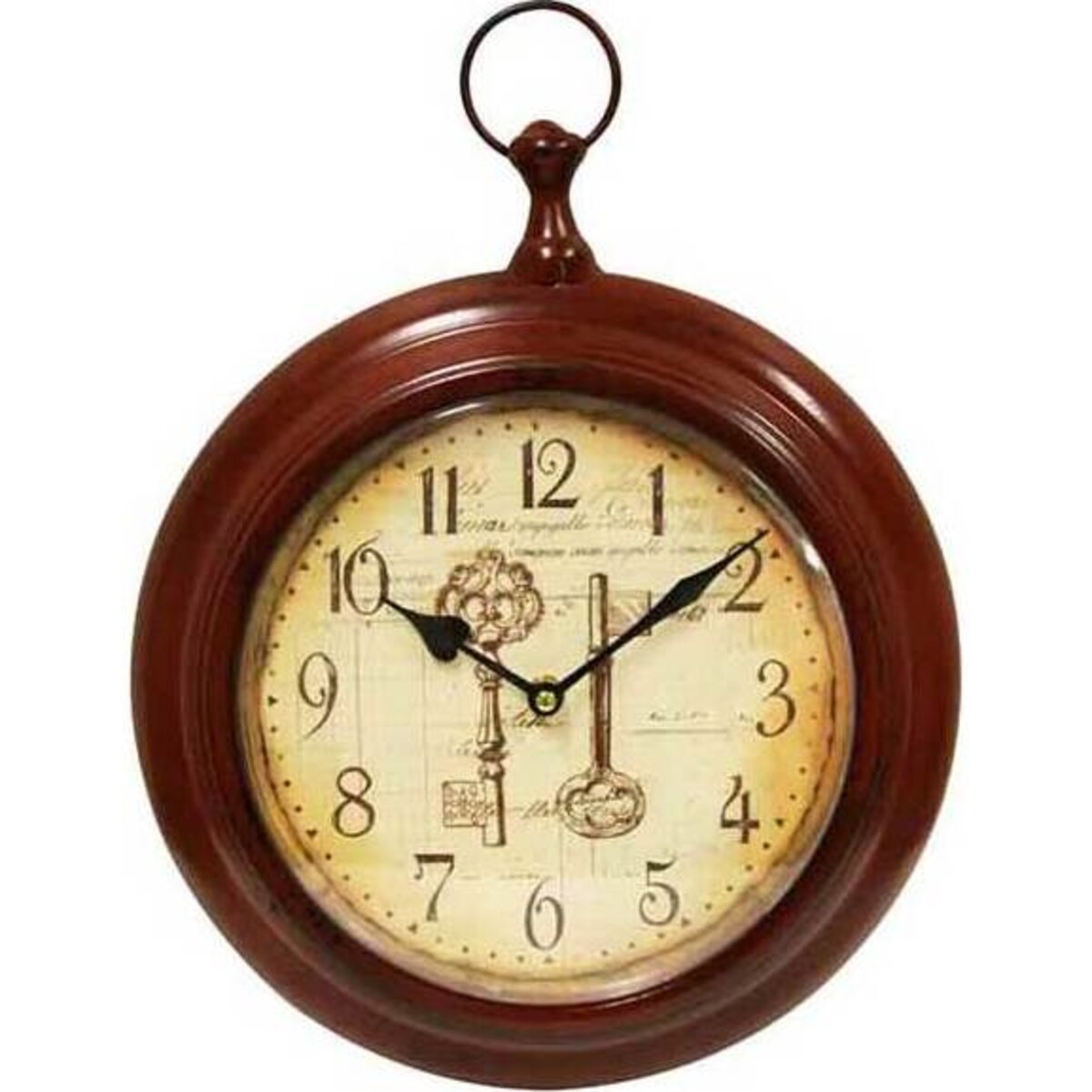 The Key Script Loop Clock is a 1920s theme clock. The basic and vintage design of this clock is brilliant and will certainly spice up any living space. This stout clock is held together by a rich mahogany frame that is sure to last for an insurmountable amount of time. At the apex of this clock, you will find a hook used to hang the clock. The clock itself if protected with a glass frame. Inside this frame you are greeted with an array faded colouration. This faded complexion is completely deliberate in hopes to maintain the 1920s theme. Entering a room with this clock either on the wall or hung, will undoubtedly create a timeless historical environment that will indisputably upgrade the decoration of any living space.