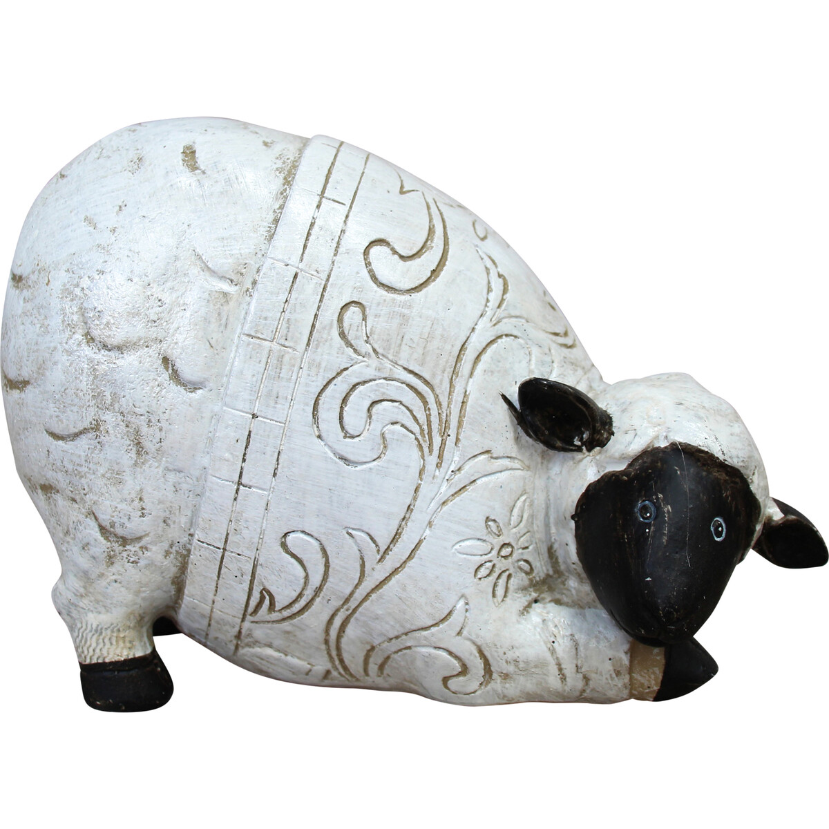 The Sheep Lying decorative piece features a white sheep with black ears, hoofs, and face. On the body of the sheep are beautiful floral patterns that run from well below the middle of the sheep right up to its neck regions. The wise choice of white and black painting makes it possible for this decorative piece to fit perfectly right into every interior and exterior decoration. Be it an office or home, it would instantly introduce a country feel to the overall landscape. When placed on table tops, shelves and other such flat surfaces, this sheep figurine would give off the feeling of the sheep looking right back at the owner/guest. It is a perfect piece with which to mix the traditional with the modern. There are 24 in every carton.