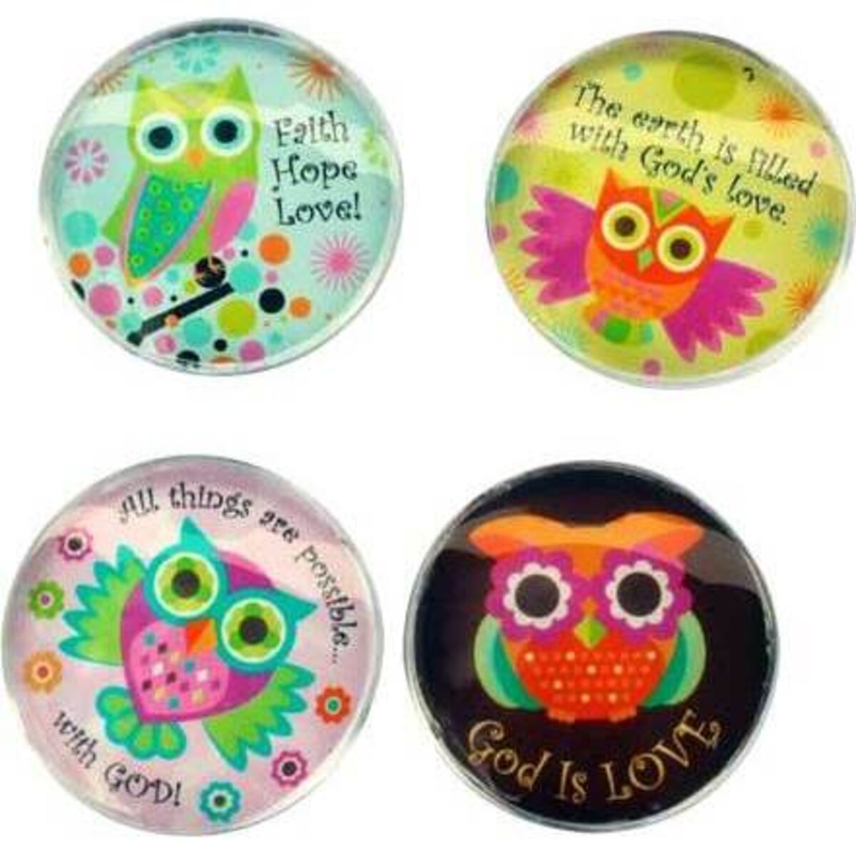 This set of Bright Owls Magnets are low-key yet noticeable decorative accents that will look lovely on your fridge regardless of the type of d_cor in your home. Each of the four features a different vibrant image of an owl along with four different sayings - "God is Love," "The Earth is Filled with God's Love," "Faith, Hope, Love" and "All Things are Possible...With God." You'll love looking at these adorable owls on your fridge on a daily basis.