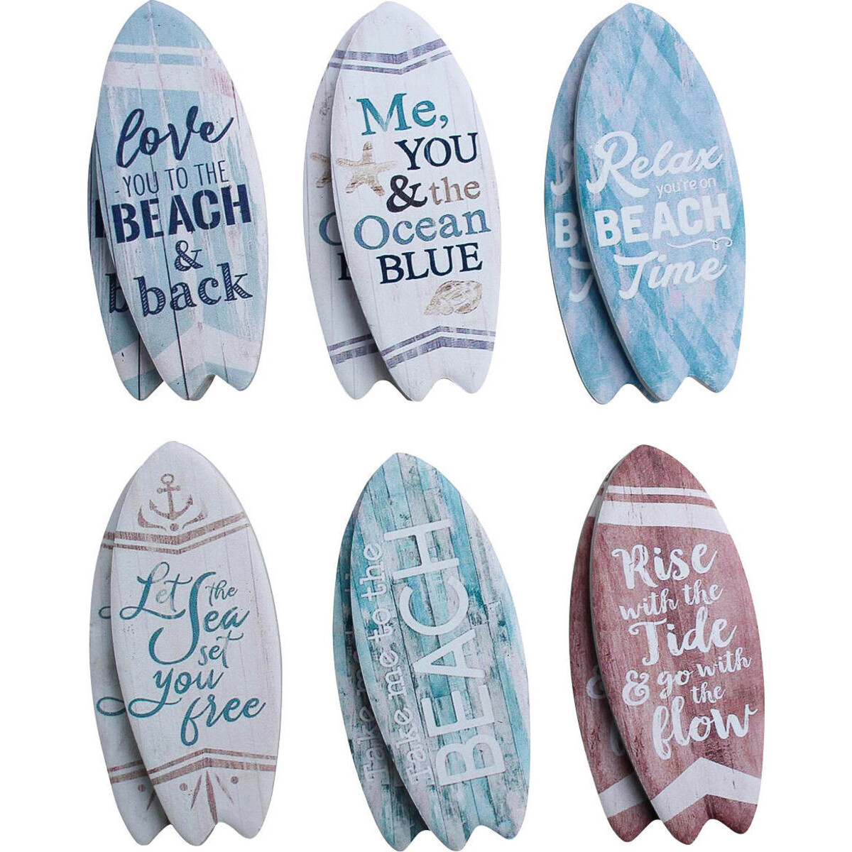 Create a spark of excitement albeit in small kind of way with this set of beach themed magnet that is crafted from cork and ceramic, the ceramic makes up the surface of the surfboard shaped magnet . There are six designs, two of each which makes it all the more interesting a set. With words printed on each that can be clearly visible because of the white coloured backdrop-they add a certain kind of uniqueness to the space with their small little presence. The ale coloured print and the white surfboard instantly connects with colours that are oceanic. Will look stunning on metal doors, panels, frames and such places that will be the perfect backdrop for this magnet. While the sheen of the ceramic top keeps it looking lively and sparkling, the cork at the back keep it light and skid free. The magnet attached is sturdy enough to give it a great grip.