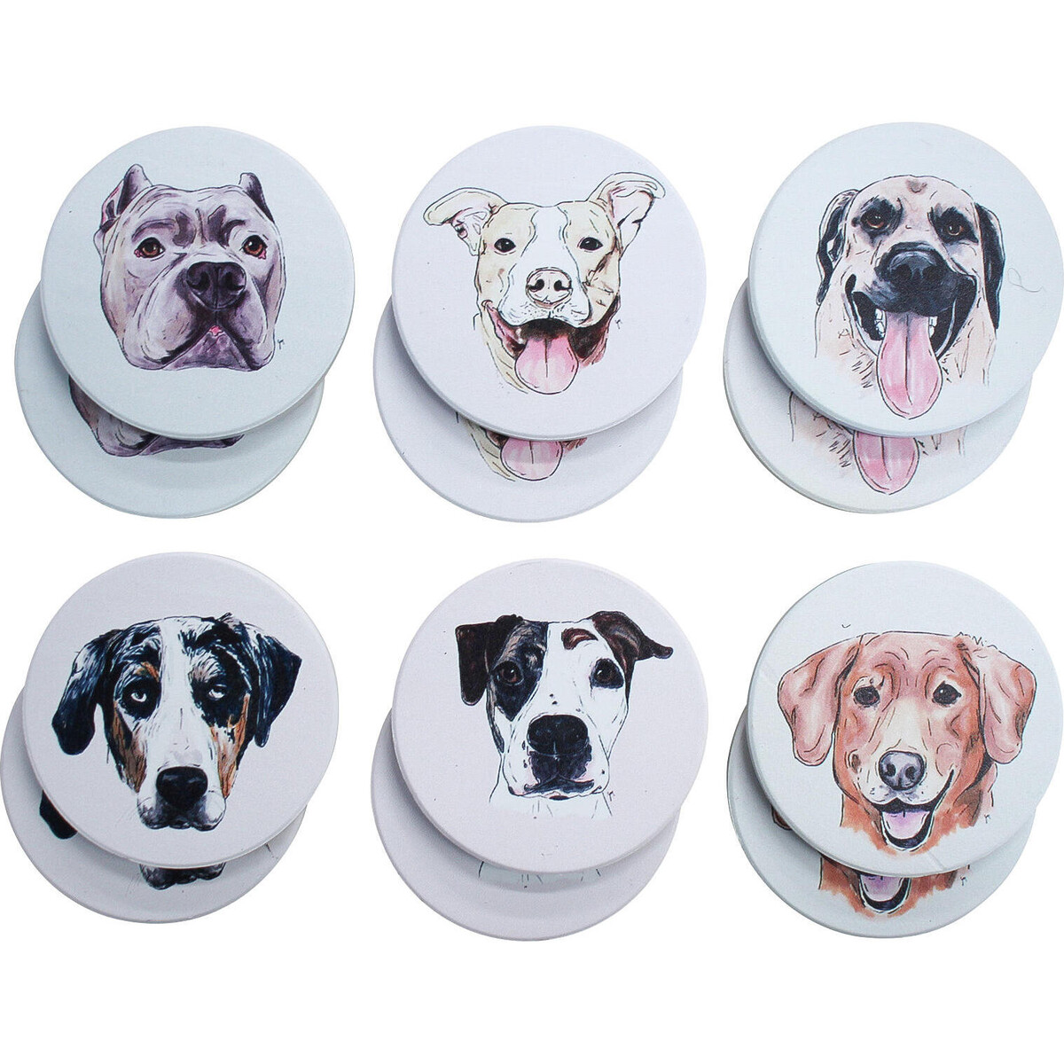 A set that comprises of six pooches-all different enigmatic faces staring out from the ceramic made magnets -there are two magnets in each variant and the come with an exclusive look. The ceramic lends the top a sheen that set off the beautifully printed face in all its high definition detailing. The magnet could be used on all kinds of metal panels, doors or frames and make a great option for small spaces and for lending them a little excitement which goes amiss while looking at the usual décor. The round magnets are 7 cm in diameter making them large enough to be clearly notices the white coloured backdrop makes the print on them clearly visible. The magnet is set firmly on to the back thus making them quite sturdy.