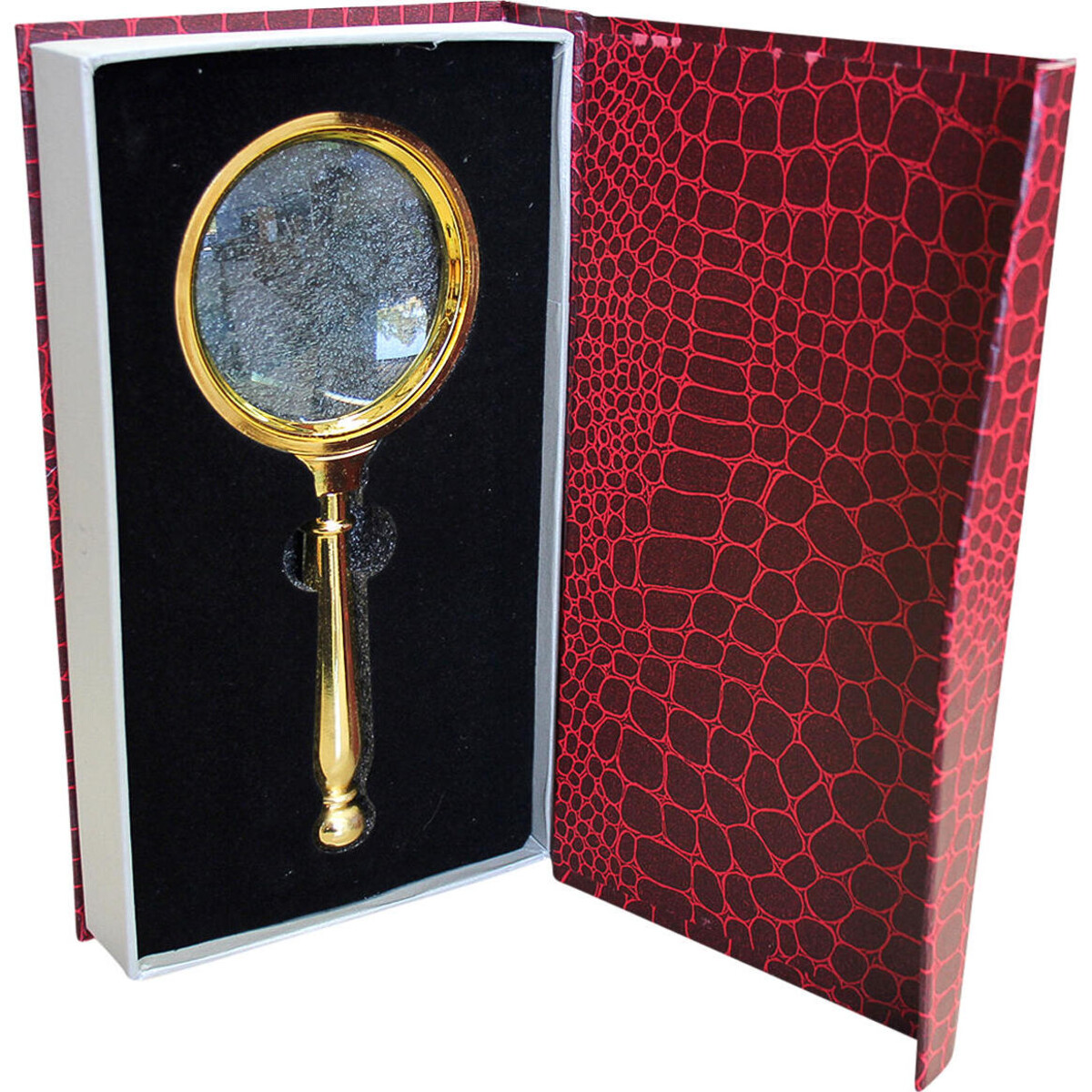 Made from fine quality glass and metal, this magnifying class will be that little wonder that will help you look closer at the small print and take away the usual worry when things tiny have to be carefully examined-be it tiny pills that need counting-or fine print that appear in several places making it most difficult for normal eyesight to catch its details. The case it comes in makes it easy for you to place it on top of your desk. It also prevents the glass from getting scratched. A mere 18 cm in length the glass has a dimeter of 8 cm making it compact enough. Despite the lens itself being the chunky portion, the length of the handle makes it easy to hold and keep steady. The case has a faux leather look. The delightful combination of an antique look metal frame and high-grade glass will make your work so much easier. The flip cover makes it sleek and compact.