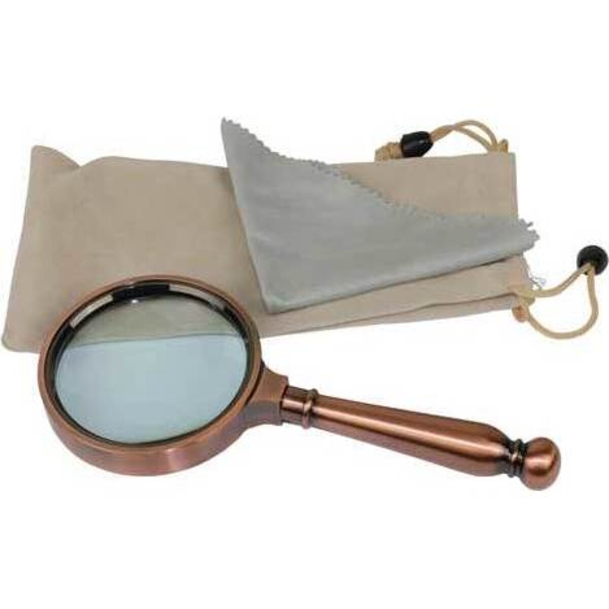 As age catches on there are a large number of challenges that confront us but the one that can be quite daunting is the disability to read or see things really tiny - here is an easy handle and truly great magnifier that makes seeing the tiniest of details it in art, embroidery, fine prints or the likes that one feels will be too challenging for ones eyesight - this magnifying glass will come to ones aid. Lightweight and easy to carry, this magnifying glass comes with sturdy structure made from metal that gives it certain amount of sturdiness while not adding too much weight to it. The burnished copper colour is amazingly attractive. The handle is designed in skid free design and will be easy to hold and handle. The superb magnification provided by the glass will take care of all your sight related issues when it comes to things really tiny. Comes with its own soft glass pouch and has its wipe to keep the glass stain free. The fully moulded frame provides great balance to the magnifying glass which makes it easy to hold even though it has a length of 17 cm.