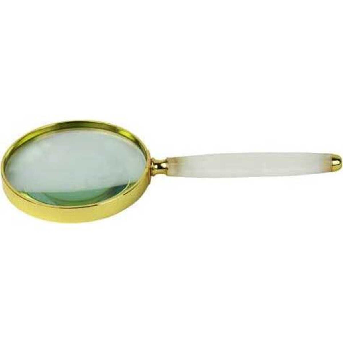 While prints keep getting smaller and one's eyes keep facing the challenge each day because of eyesight issues it is imperative that one has the help of magnifying glass that can keep us feeling les challenged with one sight - so be it reading the list of contents on back of labels, or trying to find a tiny piece of ornaments that may have fallen off - without too much of straining of one's eyes, this magnifying glass can help you with a better sight. The handle has fine grip and can be held for long without slippage, while the quality of the glass itself gives you distortion free images. The easy to hold and handle glass has a diameter of 9 cm and the entire length is a mere 18 cm. The golden rim, the crystal coloured handle with golden highlights makes it a fine piece to have on the study table when seeing the smallest places on the globe sounds like a challenge. Read all the fine prints that you find with amazing clarity and see how your confidence increases with easy magnification for better viewing. Light weight, compact and easy to use.