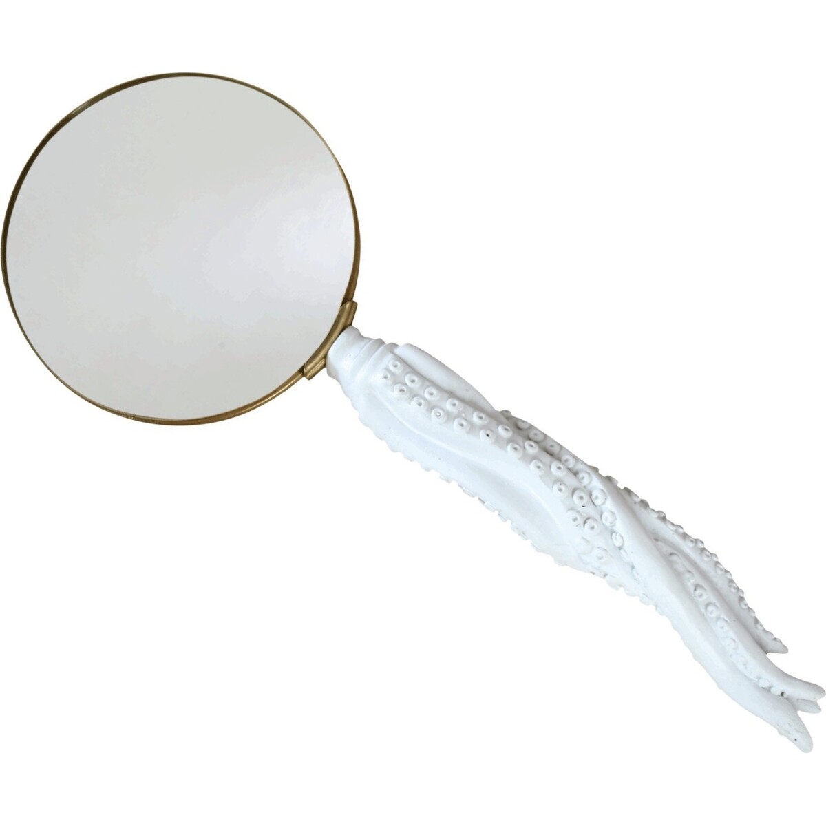Did you know that octopuses have three hearts and blue blood? Well, they are magnificent creatures of the ocean. It is the magnificence of octopuses that influenced the peculiar design of this Octopus Legged Magnifying Glass. Unlike conventional magnifying glasses, this one differs from the rest in that its handle is made in the likeness of octopus sucking limbs. The ergonomic octopus handle ensures a comfortable, proper grip while prying into objects and living things that require a closer scrutiny that is beyond the capability of the human eye. The magnifying glass itself is made from top quality glass that has undergone special processing to ensure it delivers a detailed magnified view when in need. The octopus handle is a beautiful, immaculate white while the glass itself is surrounded by a gold-painted metal. The whole apparatus is made with Metal, Glass and Resin. There are 24 pieces in every carton. They would make a wonderful learning and playing toy for kids especially.