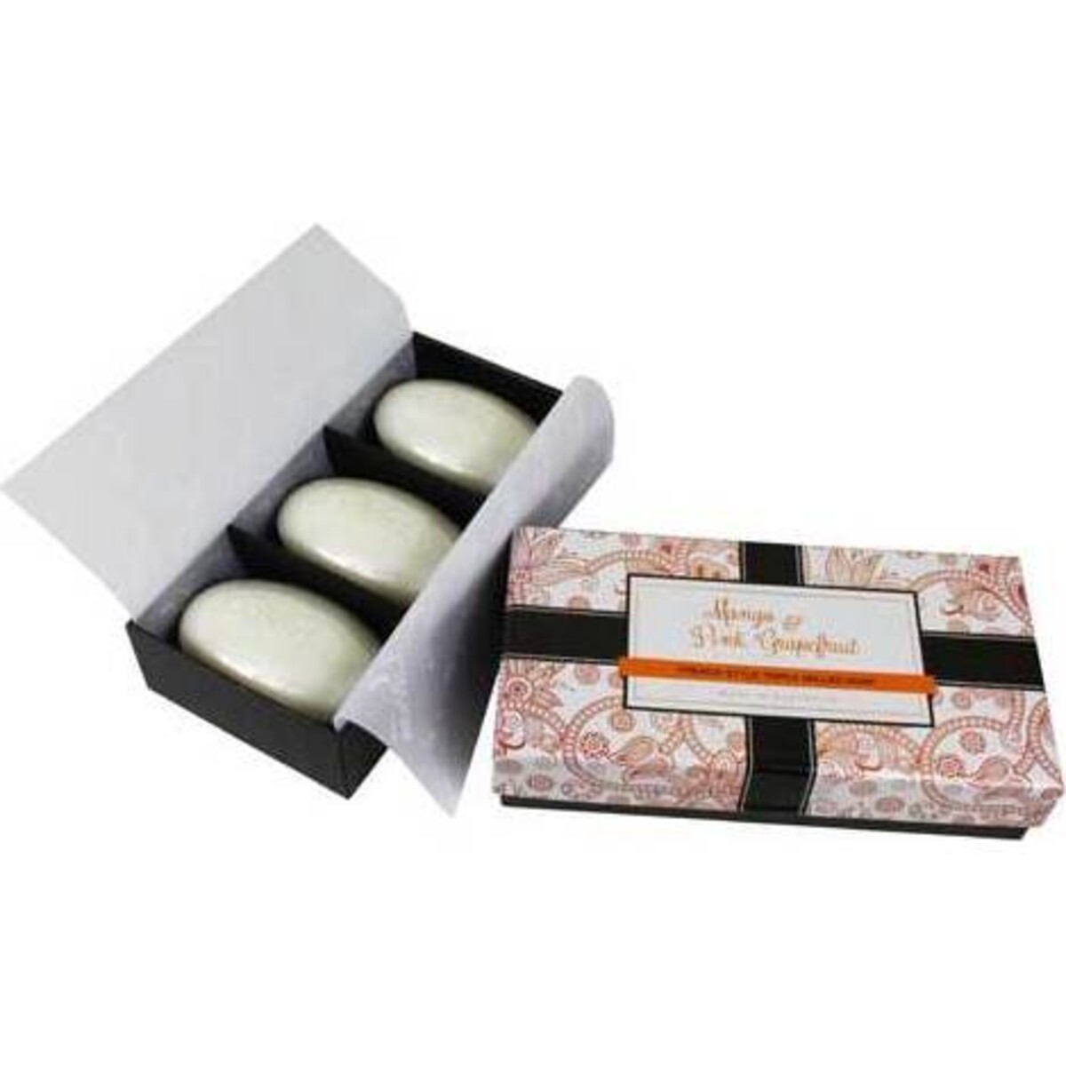 Bring a zesty and tropical vitality to your skin with these mango and grapefruit -scented soap bars.
