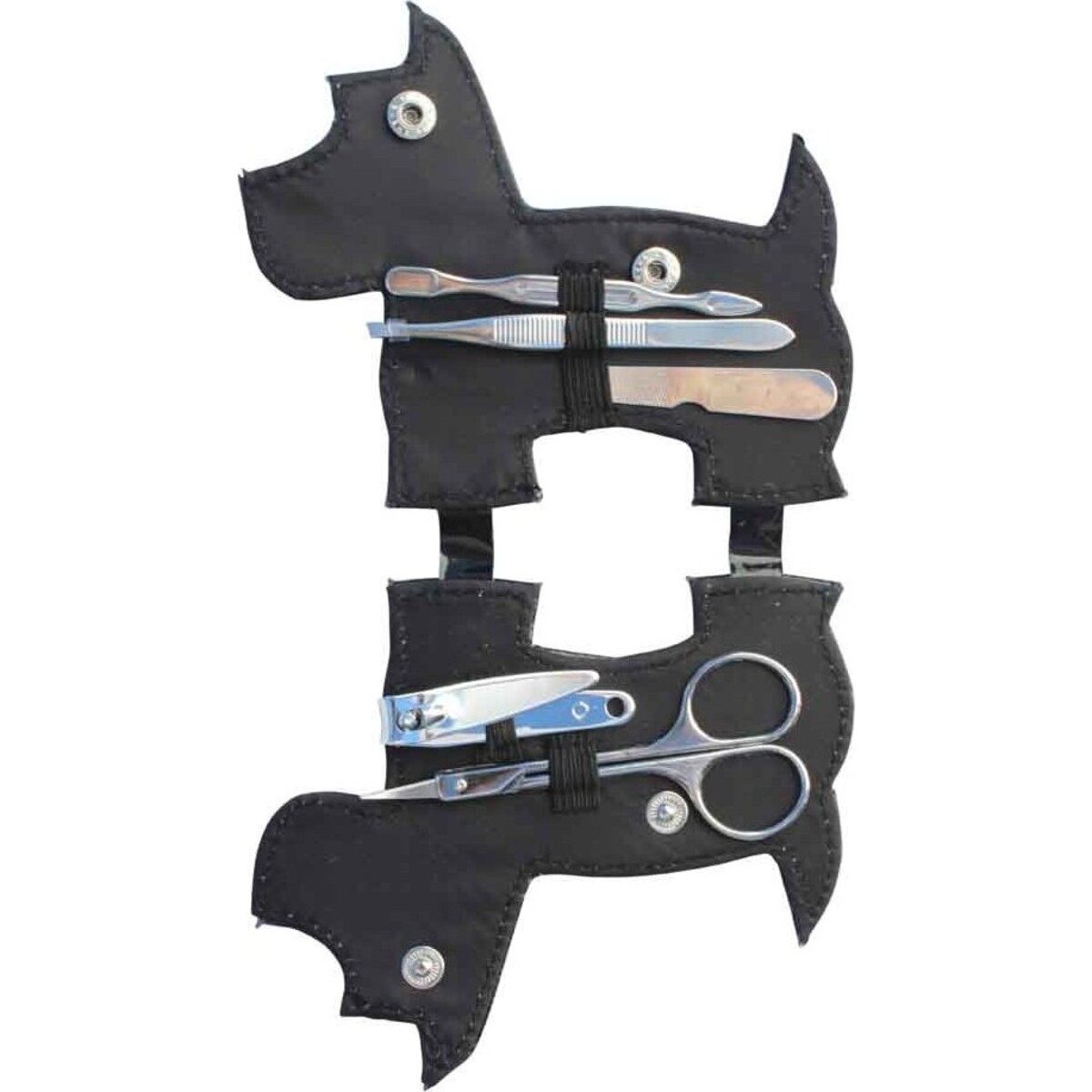The Manicure Case - Black Scotty is a stylish manicure tool case that is perfect for dog lovers. It features a cute mutt design in shiny faux leather material. The nose tip is featured to have a cute pink colour and the leash is in the form of a diamond necklace with a big diamond pendant.