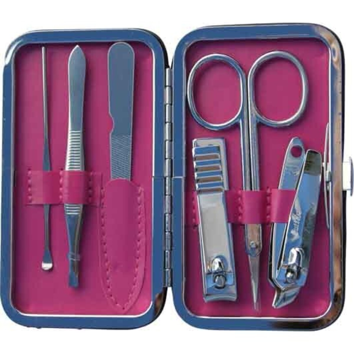The lovely case is wide enough to carry all the basic manicure materials that a woman will need like nail clippers, nail files, and others. The manicure equipments are held in place by pink straps, making sure that they do not get jumbled up while you are on the go. A clasp at the side also makes sure that the case doesn't open when you don't want it to.