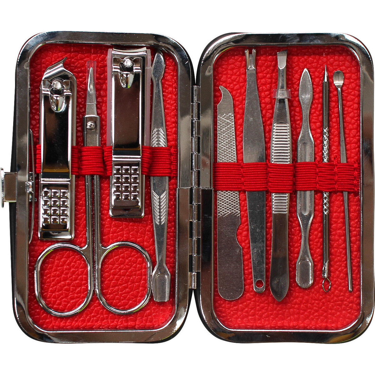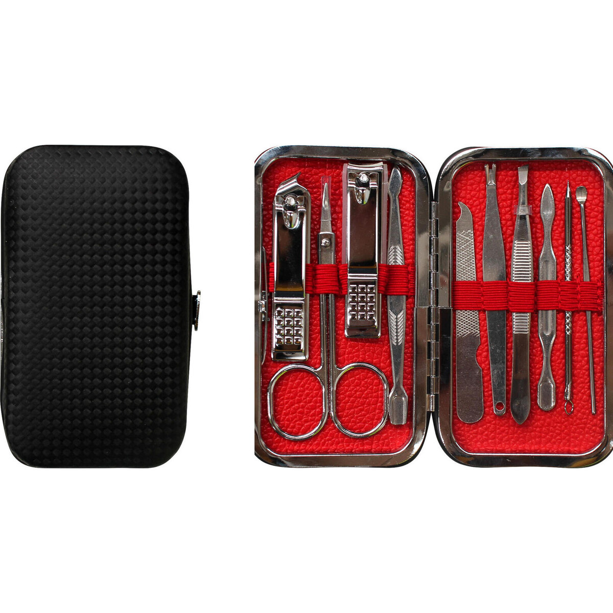 The set comprised of several precision-made delicate tools that are superior in terms of their finish and the kind of work they will render for that extremely stylish manicure-be it a varnish or paint-a manicure is necessary before you could glamourize your nails. This set of manicure implements will ensure the ease of carrying out such a manicure in a jiffy. The set is encased in a box that is a merely 10 cm in length and 7 cm in width with a lined inner sanctum where an elastic band keep the tools well placed and firmly held in place till you decide to pull them out. A simple wipe of dry cloth and you could replace them back in the case after use, rust free metal tool such as this will continue giving you great service for a long time. The case is water resistant, a necessity considering how often such sets end up in damp washrooms and such places. It is particularly helpful for all who travel a great deal. The case closes with a firm click and its textured dark exterior makes it look like a perfect grooming accessory for guys and girls alike.
