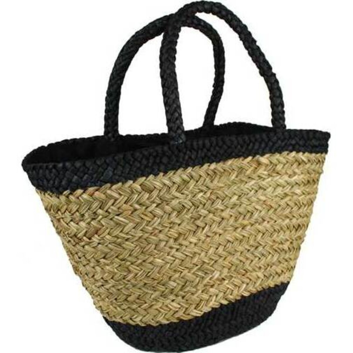 A market bag designed for carrying comfort and the ease of using-this market bag made form sea grass has been expertly woven and shows great promise as far as quality and durability are concerned. The weave is such that the bag has strength as well as flexibility. The two toned colouring helps it get an extra fresh style. The handles are also designed in such a way that they will allow easy carrying. The lower portion , and the upper black band give feel of better structure to the bag while the black handles add more definition to its design. The bag ahs great capacity and strength and should see one though years of usage. Its colour combination is so mart that it will blend in wonderfully with any smart casual wear that one would wear for a day at the mall or the supermarket trip.