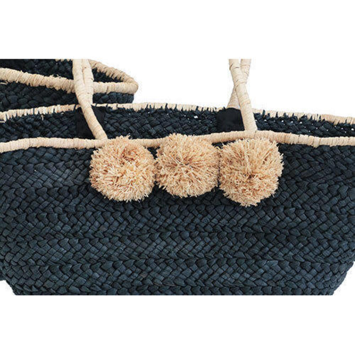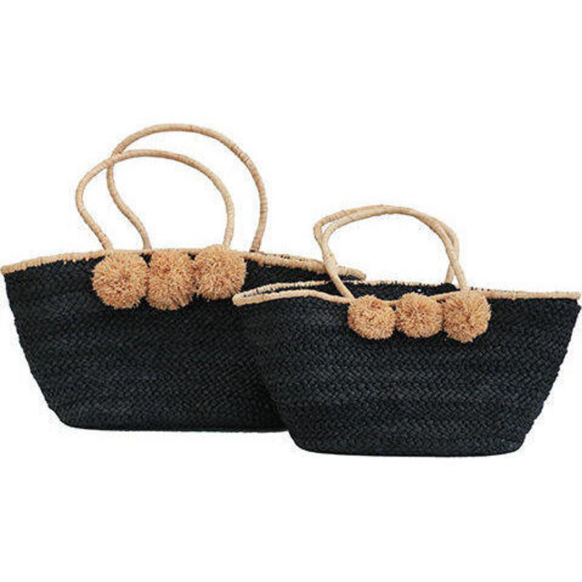 Keep it like any other handy bag to hold all your day’s shopping, or simply load it up with all your goodies when a picnic is on your mind -the two bags are sturdy, gorgeous in their colour, the weave sturdy yet lightweight, making them a perfect accessory for all of your needs. When it comes to choosing bags that are more than mere arm candies, you have to consider comfort of carrying as well as sturdiness, and on both counts the smooth handles makes it rathe easy to sling on the shoulder while the boat shape allows a great deal of articles to fit into it with ease. While the larger bag is 70 cm long, the smaller one is 64 cm in size and thus when not in use the smaller could easily nest within the larger one. Always have bags such as this handy in your car, just in case a random need arises. Or simply keep it as a handy day bag, with its stylish black colour and the three pompoms adding much to its appeal.