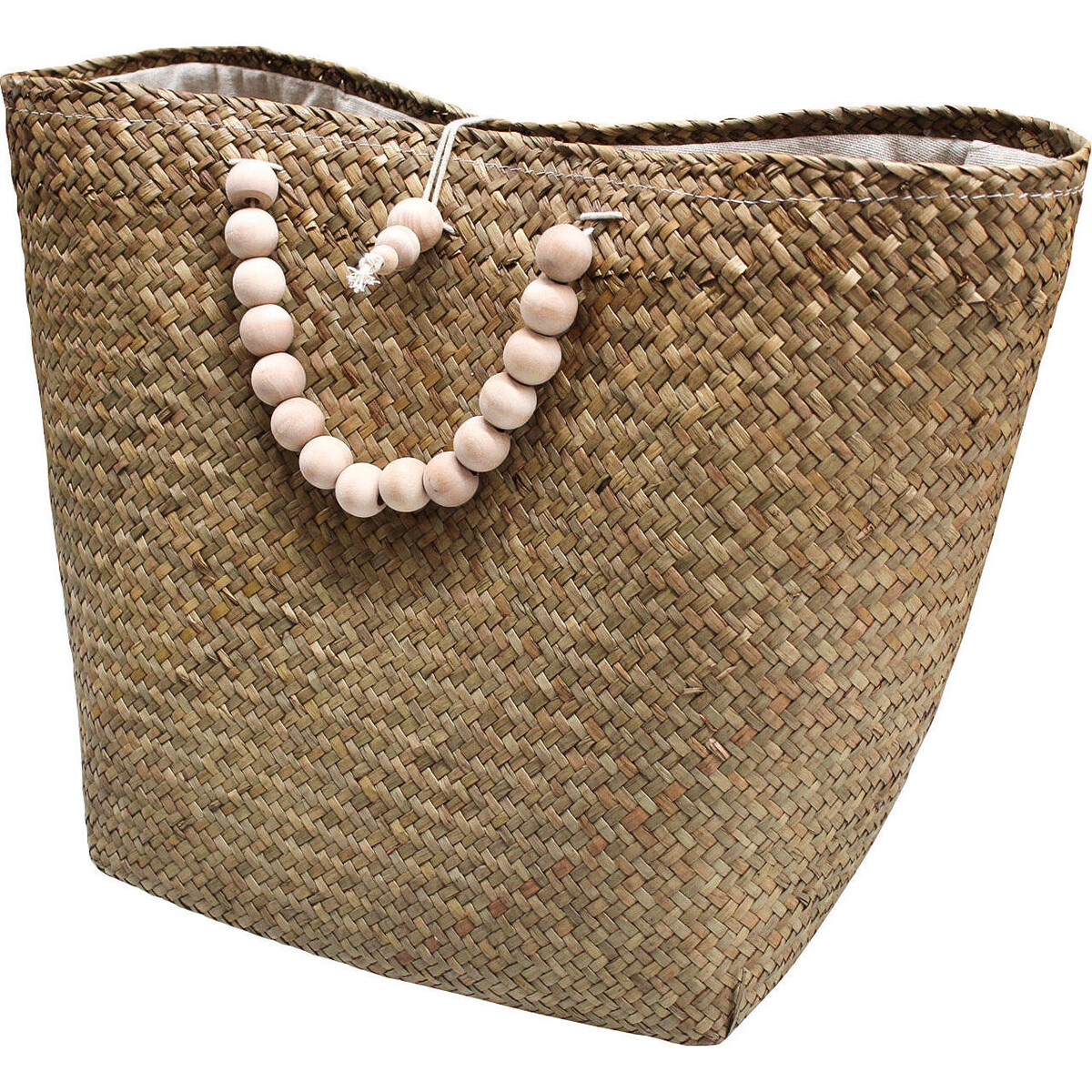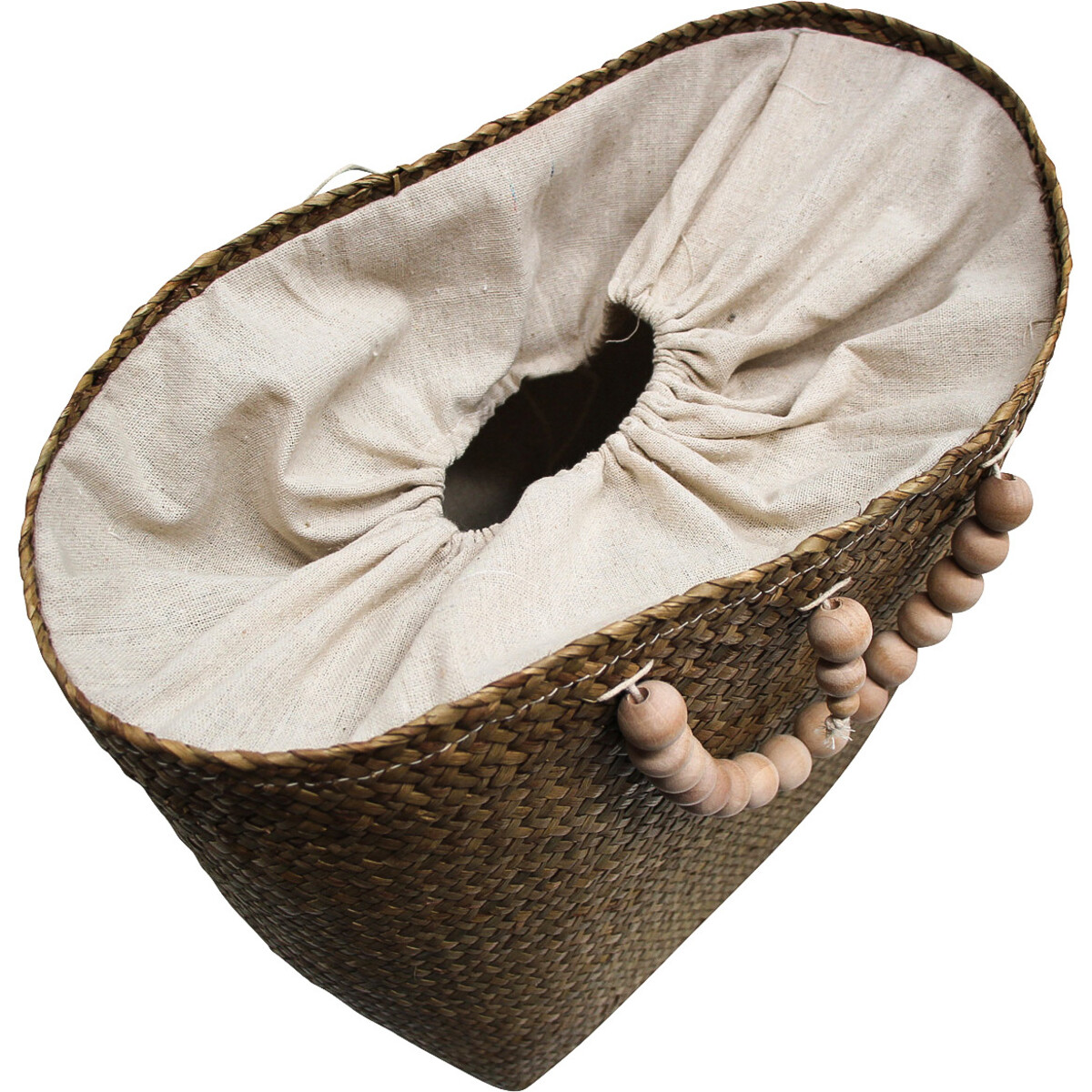 Swing or sling it across your wrist-the beaded closure and handle, the cotton inner lining and the straw woven exterior combine fabulously to give you a one of a kind bag, that is not merely sturdy but also designed to offer you the best in style and comfort of carrying. The woven straw body is pliable yet firm as well. The inner space is lined in an off-white cotton fabric that pulls up to give you an elasticated closure on top so as to help keep the goods secure inside with no fear of them popping out of the wide mouthed bag. The handle is fashionably created from wooden bead that coordinates with the sling and bead closure. Organic and fresh in appeal, it is the kind of bag to go with all kinds of outfits. The bag is 41 cm in height and about the same in width though it does widen on the top and shapes to a tapering kind of look at the base.
