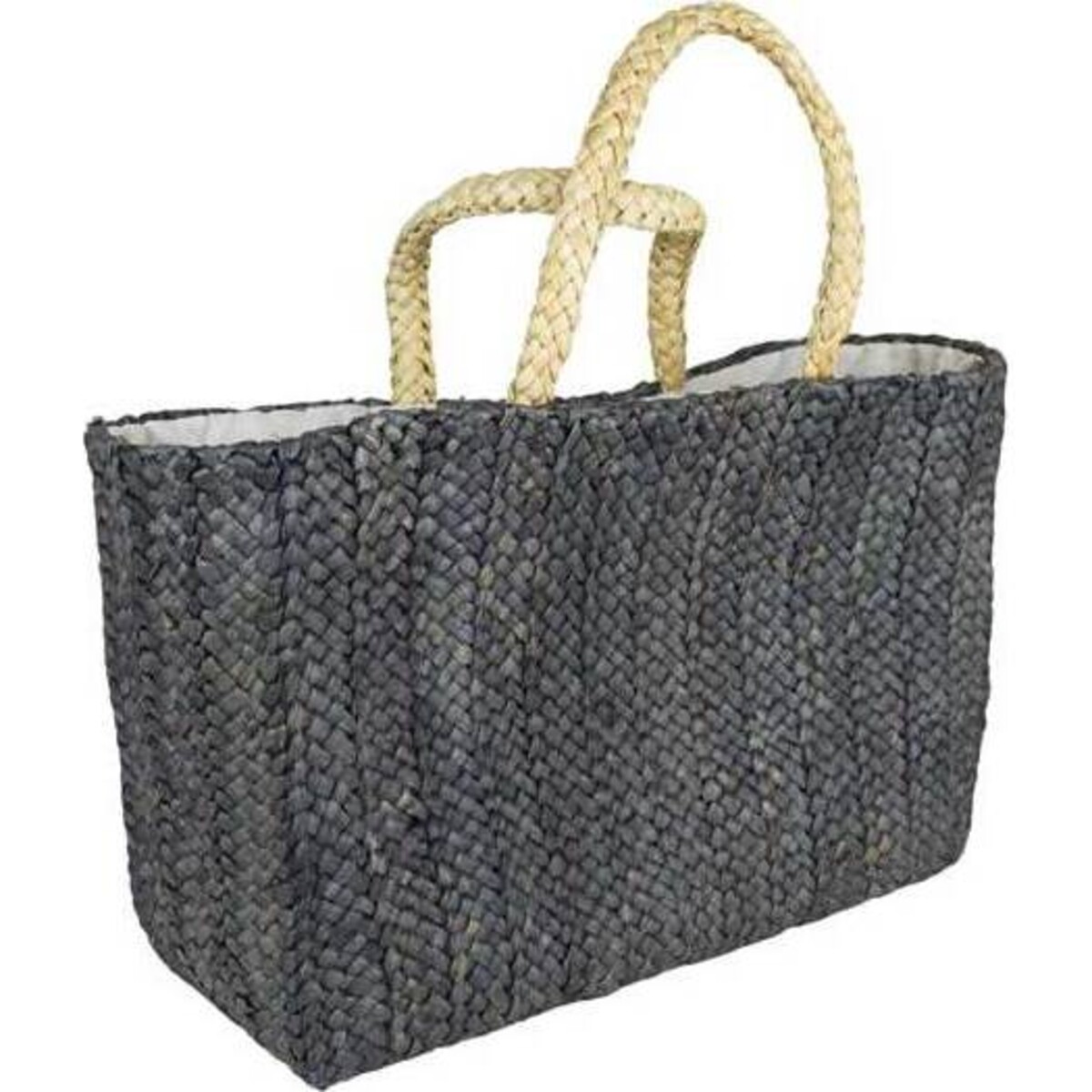 Woven straw can be a rather resilient material and can take a lot of wear and tear. This gray bag is proportioned in way that it will be most suited for a dayés shopping trip. The bag is about 48 cm long and 30 cm in height while its width is 12 cm. The bag has been given a cotton lining that is soft but tough and will withstand rough usage. The weave is also net and created by expert hands. The bag has soft rope handles that will be easy to swing from the shoulder or hold allowing easy slip proof grip. The bag will look quite stylish with all kinds of casual clothing. A must have for those who like to shop in style. The broad base and the wide opening will allow one to keep many a things in it without worrying about scarcity of space.