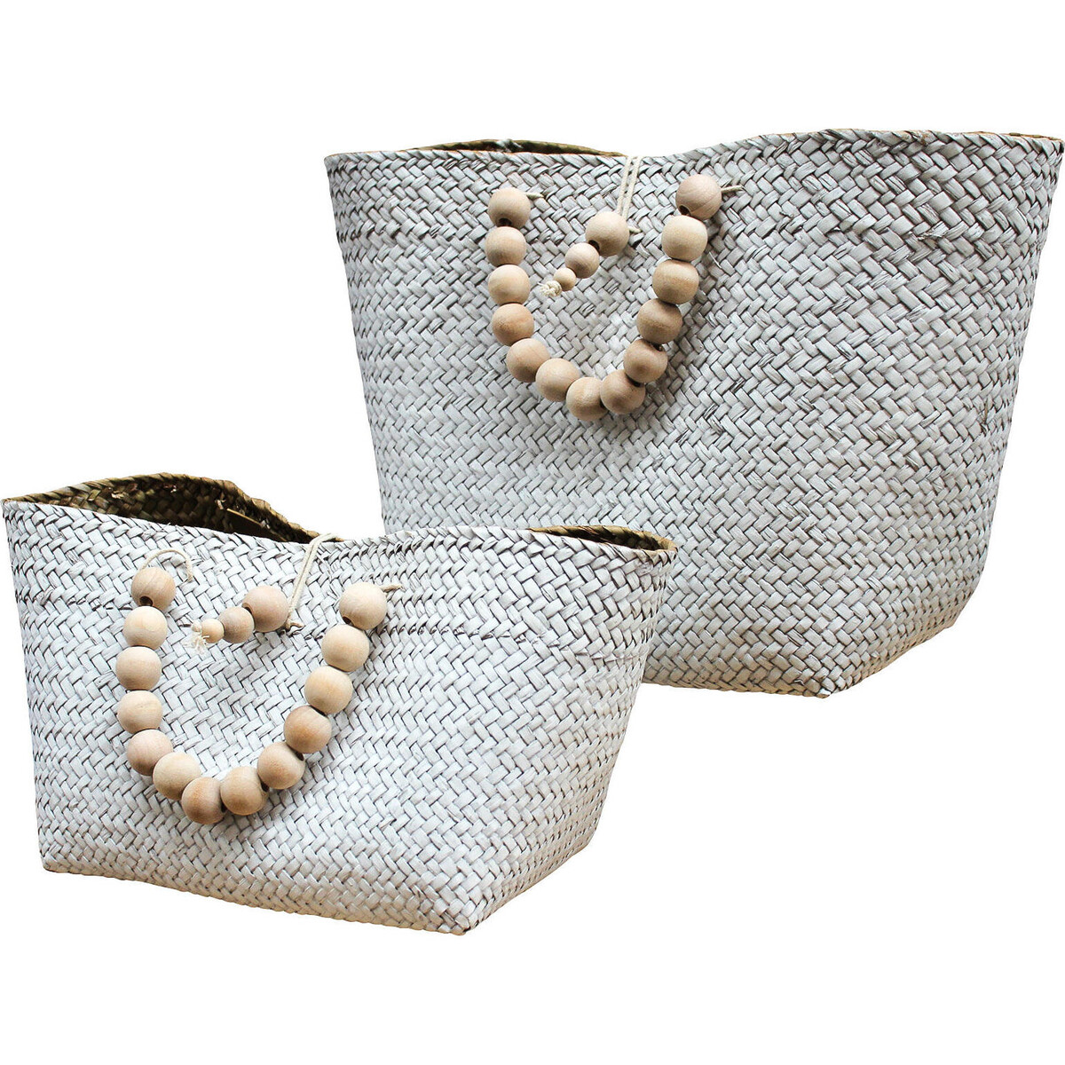 Made from straw and created for maximum strength and storage-they make an incredible splash of informal style with a traditional weave that has been a recurring style statement in most of the revived baskets style from Lavida. Bring to your accessory collection the touch of organic beauty is this twin bag set-one larger than the other and yet the kind that has been sized so as to nest easily-one within the other. The straw gas been given a touch of natural colour, while the cotton made handles add that zesty flavour to its look-very beachy summery fresh in appeal. The large bag is 31 cm in length and about the same in height. The smaller one is equally efficient in carrying all those spill overs that do not fit into the larger one yet as a bag could be carried like any of your other arm candies. Bring a fresh new verve of style to the way you accessorize this summer.