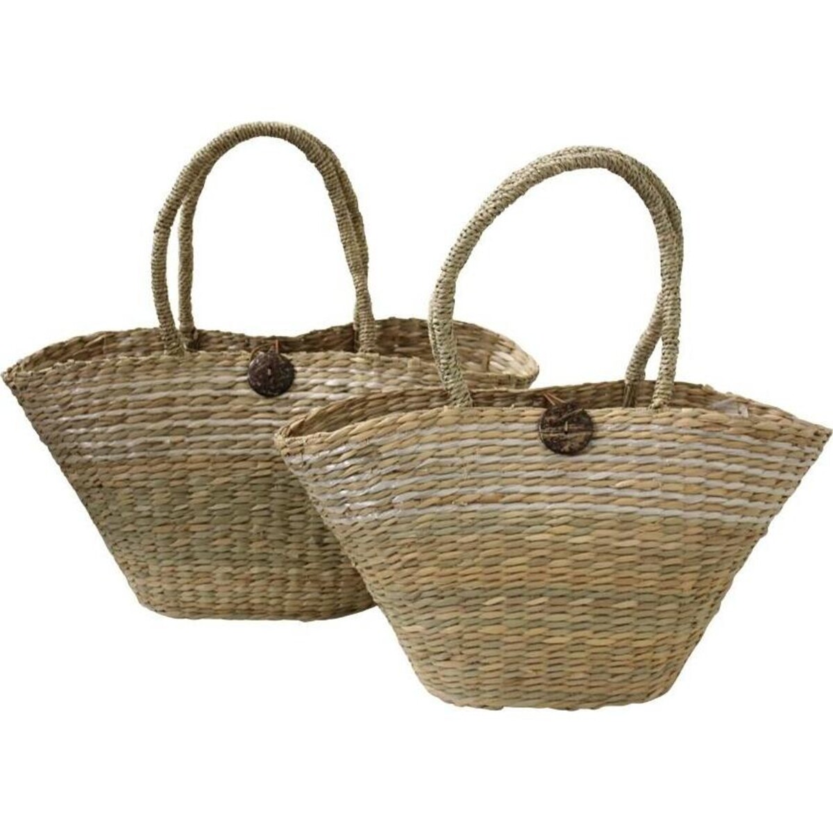 Who hasn't struggled with their shopping not fitting into the bag. Each of us has faced the dilemma of carrying a bag that looks good but does not have adequate space - or carrying one that is large but downplays your outfit - here is an option that gives you the best of both worlds. The bag comes with soft handles that will ensure that your hands or shoulder shall remain free from discomfort, while the spaciousness of the bag will ensure that your shopping always and every time does fit in well. Never mind the next excess that you do while you shopping craving is on - here is the perfect seagrass made artisanal crafted hand bag that looks superb with all your day or evening time outfits and will remain sturdy even under the heaviest kinds of weights. The set has two bags one smaller than the other thus allowing easy nesting when not in use. Will see you through many years of great shopping times!