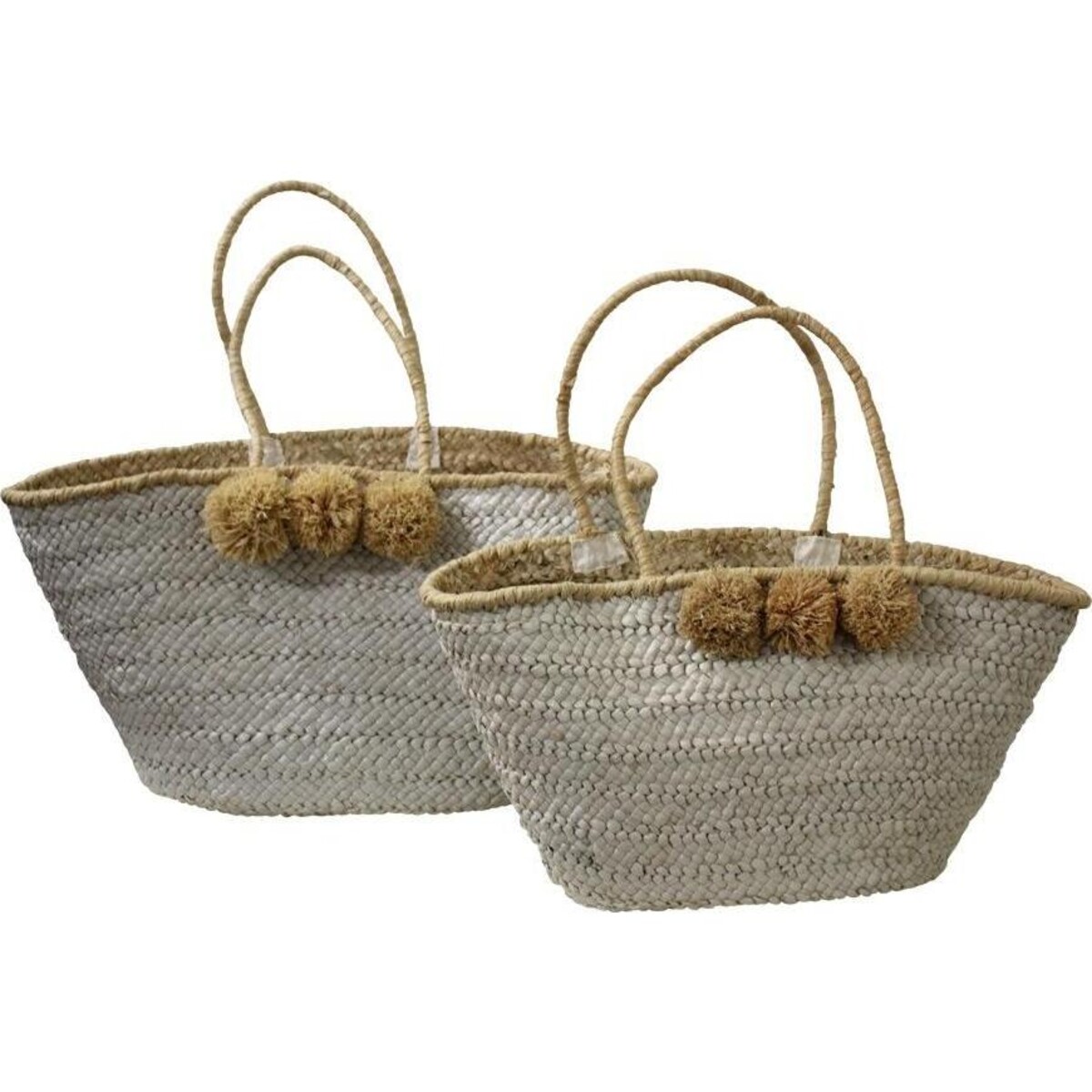 Add shopping bags to your collection that make your shopping or marketing day easy. The soft woven handles will not cut into your fingers when held with a load of things in them and despite the weight, will hold on fine. Has been woven using age old crafting technique that is made of polyester twine. The trim has been made of seagrass in natural beige colour. The pompoms along the rim are just three in number but add that beautiful highlight that adds to the colour chicness of the bag set. The boat shaped bags are wide mouthed and so will allow a great deal of stuff to be placed in its rather sturdy interiors. Will not lose balance and shall retain its shape despite much rough usage. In this set there are two bags, one slightly smaller than the other and the kind that will nest within the larger one when not in use.