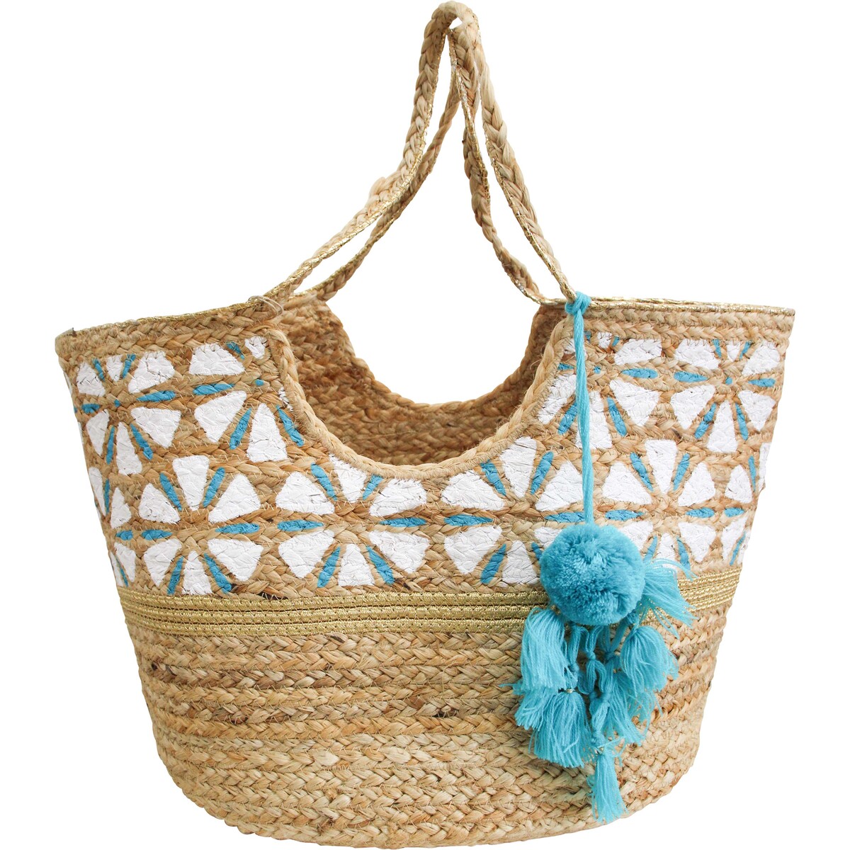 Unveil the charm of natural elegance with the Martina Jute Bag, a perfect blend of functionality and boho-chic style. Crafted from durable jute material, this spacious tote bag measures 50x30x31cm plus handle, and features a beautiful blue and white pattern with an eye-catching tassel accent for a pop of colour. Retailers, stock this eco-friendly accessory to captivate eco-conscious shoppers looking for a versatile and fashionable bag for their day-to-day or beach excursions.