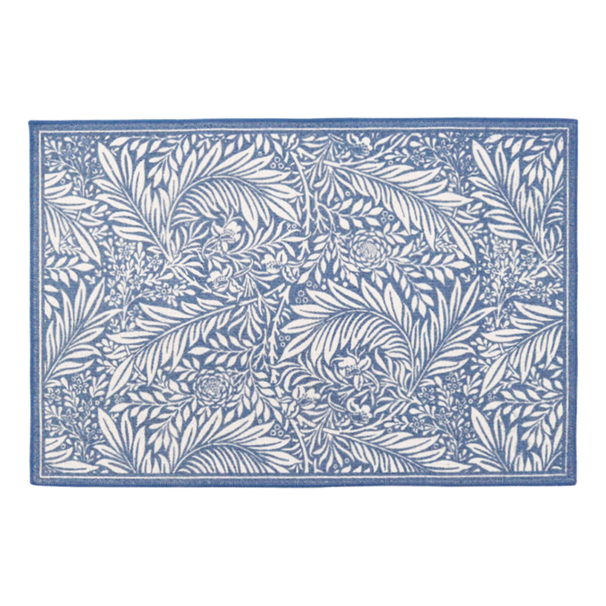 Our Mat Blue Larksspur - it’s pretty hard to walk past it without taking a second look. We’re talking about a mat that has all the decorative flair of a centrepiece with the practical sense of a floor covering, which is actually something that a lot of customers seem to want. The elegant blue and white pattern features oversized leaves and delicate florals that feel right at home in traditional, coastal and even Hamptons inspired spaces. The 60x90 cm rectangle is just right for entryways, kitchens or bedside accents, it’s not too big, not too small. The CVC yarn has been crafted from 70% cotton and 30% polyester so it is tough enough to keep up with daily life (and pets) but soft enough on the feet for the little ones to use as a playmat too. We really like that the non-slip backing has been laminated by non-woven PVC Dot 150gms Nonslip so there are no rough or slippery patches to deal with. We find the care instructions are also super straightforward –machine wash gentle cycle, do not bleach, do not tumble dry, dry in shade, keep away from fire– you don’t have to worry about running out of specialty cleaning products or an unexpected fire hazard.
