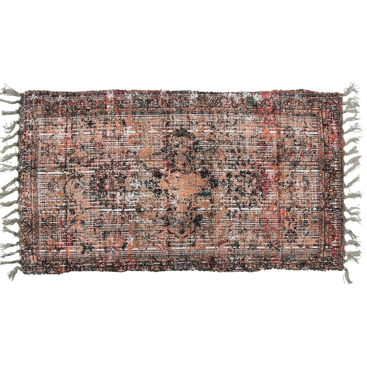 The chenille made mat is a combination of two fibres-both cotton and polyester that makes this mat tough and resilient as well as delightfully lightweight and easy to care for. The russet brown colour plays out its role to give it a distressed look which comes from the kind of printing used to give it that old vintage look. Will fit in well with homes that like to wear a soft and luxuriant feel yet be ready to welcome a lot of foot fall. The rug is soft and fine in texture and will clean out well without duress. The print makes it gel perfectly with your love for things shabby chic and vintage. The colour also makes it well suited for wood furniture used in the space. the size is as great for the living room space as much as for the bedroom.