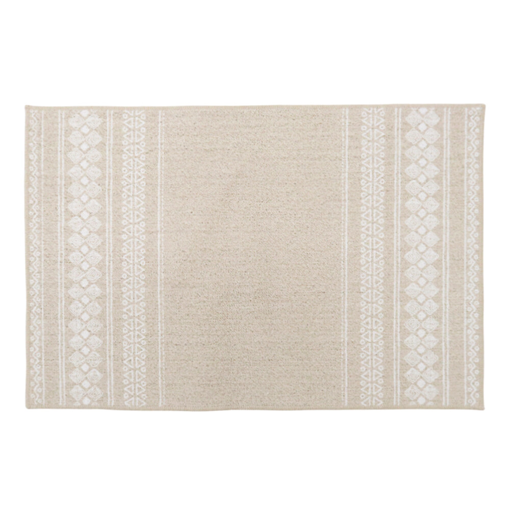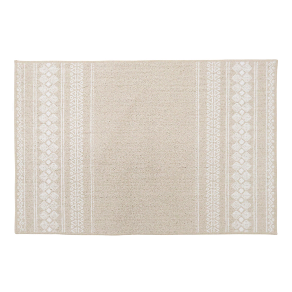 We have to say, the Jabari Mat is genuinely one of those products that feels quietly special. We love how it manages to combine that calm, neutral palette with detailed patterning, giving it a real contemporary-boho feel. And it's such a versatile size - 60 by 90 centimetres - which makes it brilliant for shops wanting something that works across different living spaces. The design is really subtle without being plain - and we've all had those moments with a mat that's a bit loud for our space.