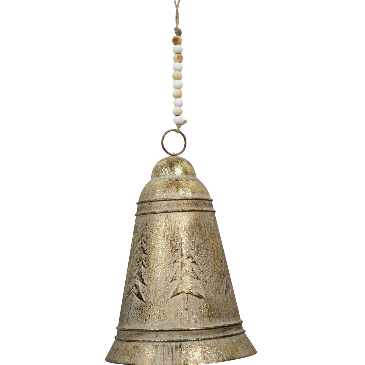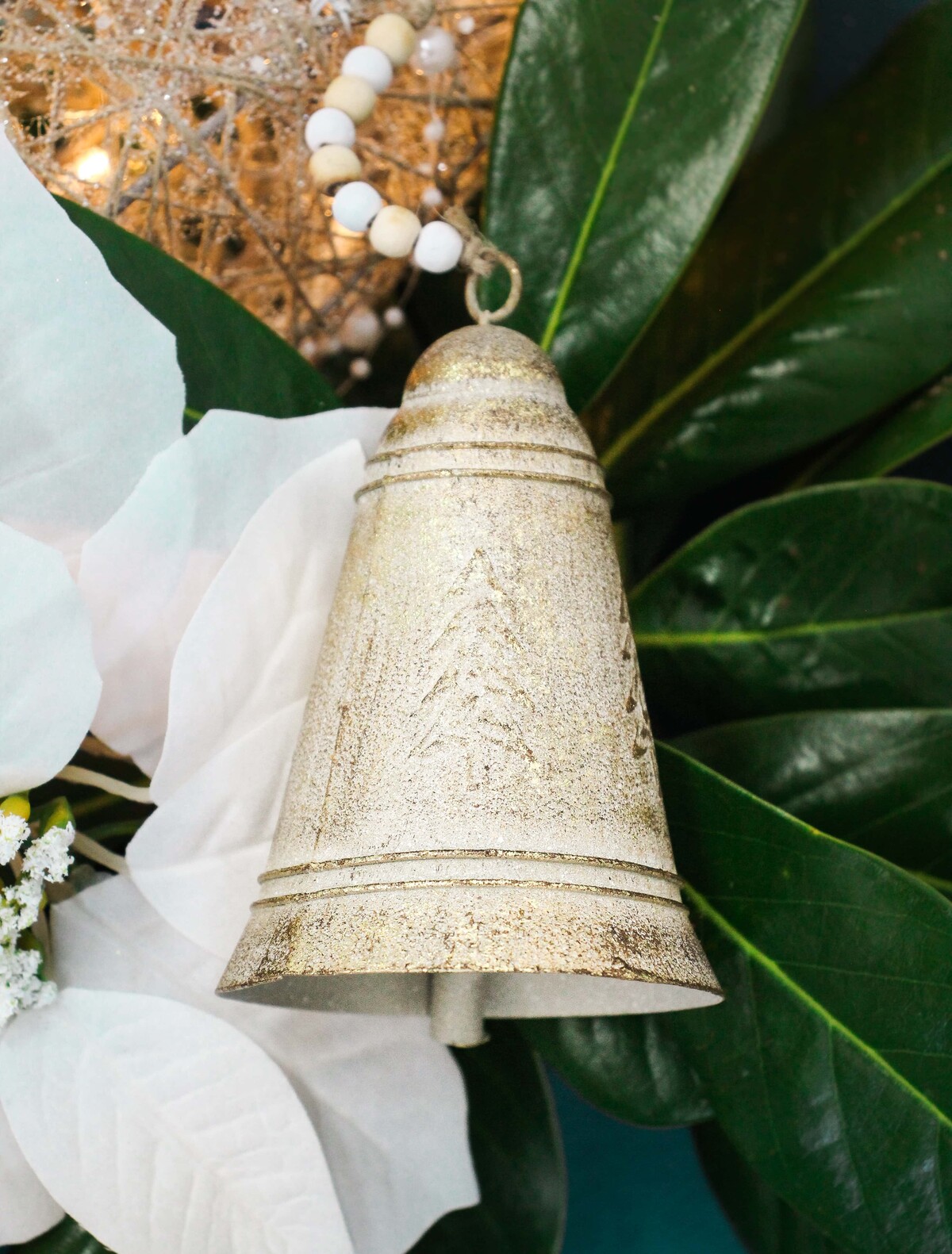 Metal Bell Lrg Leaf is a classic upgrade to one of the most widespread symbols of Christmas, jingle bells. This metal masterpiece is paired with colourful dyed wooden beads and a string hanger. Did I mention that the jute string gives it a Caribbean vibe likewise making it handy for easy installation? This pretty home accessory is handsomely coated with a gold finish. It is an ideal choice to transform a bland Christmas tree into a conversation-starting showpiece. Likewise, this large bell brings a shiny and touch to the tree.