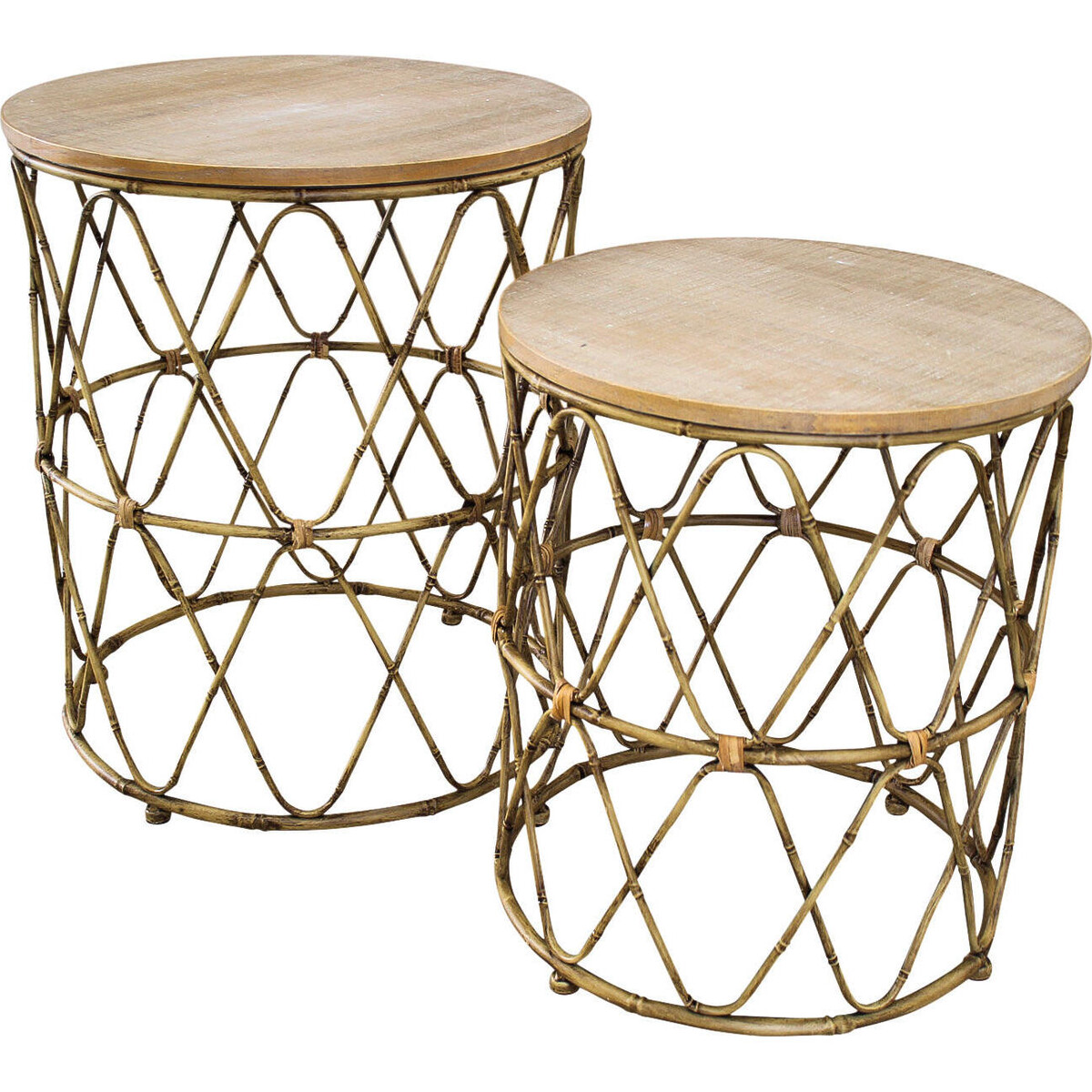 Here is a wonderful means to ensure that you never fall short of table tops spaces. this round set of tables are dainty and yet sturdy enough to make a difference t which you extend your seating spaces. Made of cane that imitates the look of wood and the top and frame made of metal grants this table a great deal of sturdiness. The cane pattern along the body of the table looks all the more attractive. The two tables being varied in sizes-including the height and dimeter, it will be used in small little niches in your rooms where there could be the need of an additional table -especially when guests increase in numbers or when you need to display something that will help make your décor look all the more charming. The tables are well balanced and will be easy to shift, lift and thus usable in wonderful sort of way.