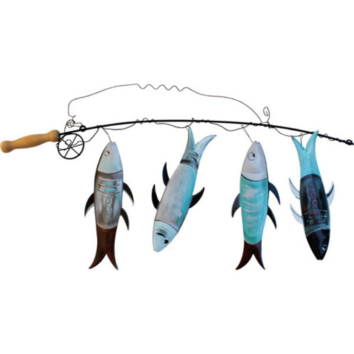 This Metal Fishing Rod designed by a Beach Art Specialist really incorporates different materials into one astonishing wall decoration. The realism of the sculpted fishes along with the artistry of the metal rod makes one fine masterpiece.