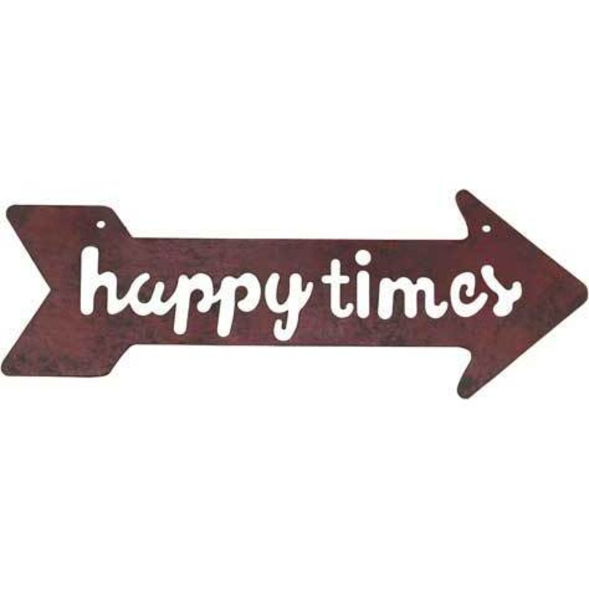The metal arrow-shaped sign points to the right and features cut-out wording that says "happy times." These are the perfect signs to put anywhere around your home right where you can see them, especially at the end of a long, tough day. As great as they are to keep for yourself, they're also wonderful enough that you're going to want to pass them on to all those who could use a reminder as well that today may have been rough, but happy times are just around the bend.