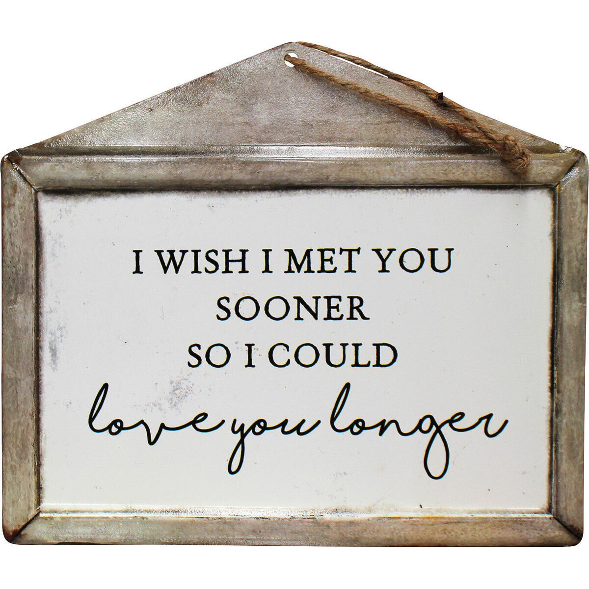 Adding sign boards in your spaces is a great means to not just add expression and ideas to spaces such bas walls, shelves and table tops, but it instantly loosen the collar and make things warm, simple and very filled with your personality-after all, the words emanate from your thoughts and when you choose a certain sign board, they usually are exactly the ideas you would like the world to know. Here is one that is tender in its meaning and soft and mellow in its impact made from material that will help build in that antique rustic feel and appeal, it's a delightful entryway signboard-great for your own bedroom or study or simply a space filler in dull corners and niches that need that little uplifting of looks. About 25 cm in height, peaking to a pointy top, its width at 20 cm makes it rectangular much like the facade of a little cottage. A slotted rope hanging inclusion on top makes it shabbier and chicer and of course eases the concern about placing it on walls.