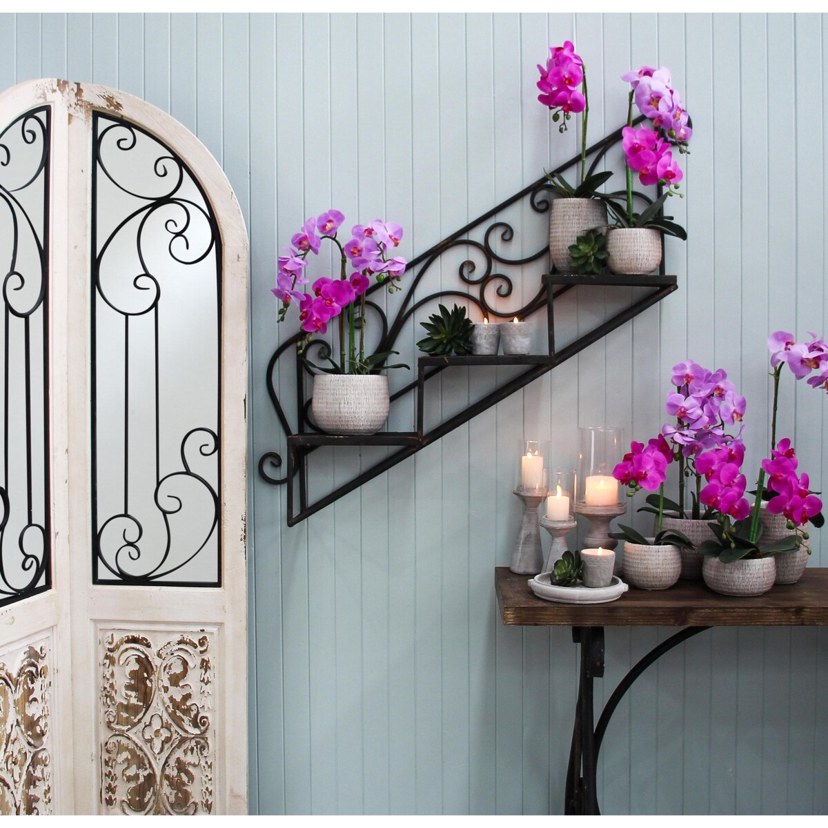 Add the beauty of rustic styling with the chicness of metal n this step style ladder like shelf unit. made with sturdy metal, it has three levels of shelf that comes with a swirly flourish of design in the backdrop and a 21 cm width shelf that is square in shape. The shelf itself is large enough to hold books or artefacts alike. The metal shelf will span almost 110 cm while the height at its maximum would be 98 cm. The three steps turn into three shelves each capable of affording you adequate space to create a wonderful décor look. The black colour of the metal shelf unit will contrast vividly with the wonderful feel of modern boho chic look that blends in well with all kinds of settings. Will be easy to mount on the wall and align well with even such spaces that do not necessarily are under staircases. Add a touch of unique styling with such inclusions and give walls something more than ordinary to rave about.