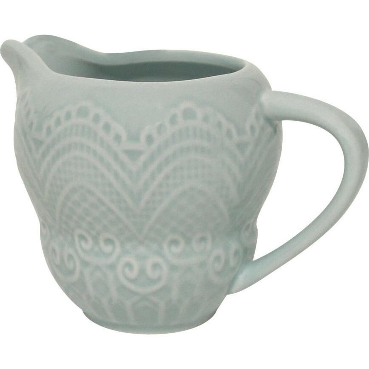 You will simply love the glaze on its delicate hued body. The white broken by the hints if blue that makes the pattern created on its exterior all the more visible. The glaze created by expert handlers in the kiln add s more charm and value. The dainty design with the small base flaring out to an elegantly designed midsection that gives the jug adequate volume for carrying enough milk for quite a few cups. And of course, the most beautiful pouring snout makes it such a delight to behold. While not at work, this tiny jug could sit atop your console or the sideboard and help make the space feel more vintage and classic in appeal. Pair it with chintz curtains, a lovely sideboard runner in lace trimming and you would perhaps have created the most gracious of looks that would say great deal about your tasteful décor. The jug is all of 9 cm in height with a 11 cm wide body.