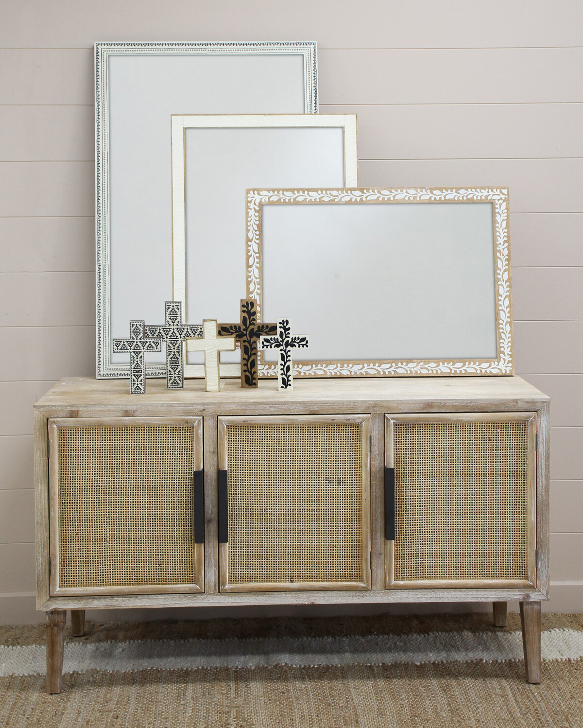 We absolutely love the relaxed charm this Mirror Amalfi brings to interiors - it really just nails that balance between rustic and coastal. The frame is made from sturdy wood and shows off a gentle, neutral colour palette with little botanical motifs, so it works beautifully in both laid-back and more elegant spaces. We find that the 50x2x70cm size is quite versatile for styling above consoles, in bathrooms or entryways - and because the mirror's acrylic, it's lightweight too, making it easier to hang or move about.