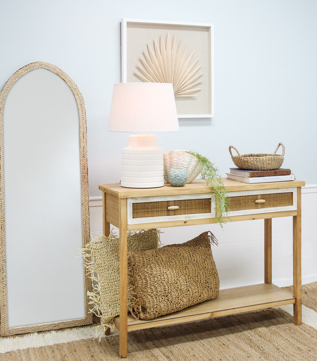 We know that for coastal-inspired interiors, it can be a challenge to find the right balance of stylish and casual. We love our Mirror Arch Coastal because it delivers just that - design, natural texture, and stunning scale. It fits beautifully into both classic Hamptons or more relaxed beach house looks. It's 50x5x150cm, which makes it a really decent sized accent piece - one that's not often easy to come by - especially with this unique arch top. The use of glass, MDF, and seagrass means you get both durability and that lovely rope border detail that feels so at home in casual living rooms, laid-back bedrooms, offices or relaxed entryways. And let's be honest - this shape is just timelessly elegant too. Our clients have paired it with whitewashed or recycled timber pieces for contrast but also next to painted cabinetry for a layered look. Easy to hang and robust enough to move around as needed. Not many coastal mirrors are this thoughtfully made!