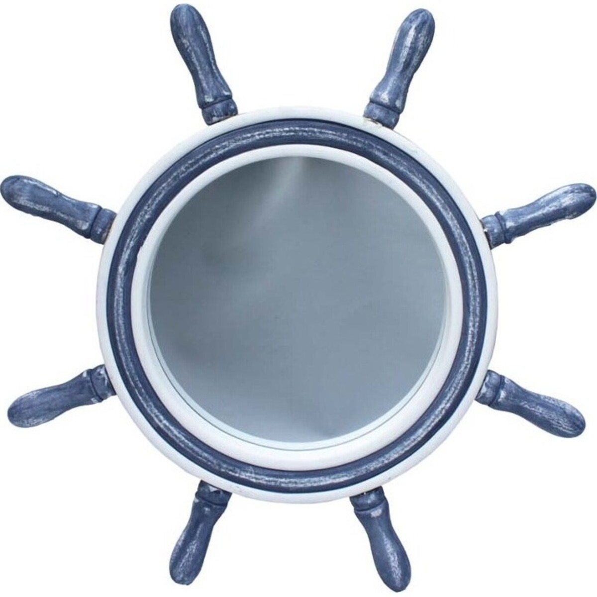 You not only want to love what you see when you look into a mirror, but you also want to adore the beauty of the mirror itself. There's nothing you won't love about this blue Boat Wheel Mirror.