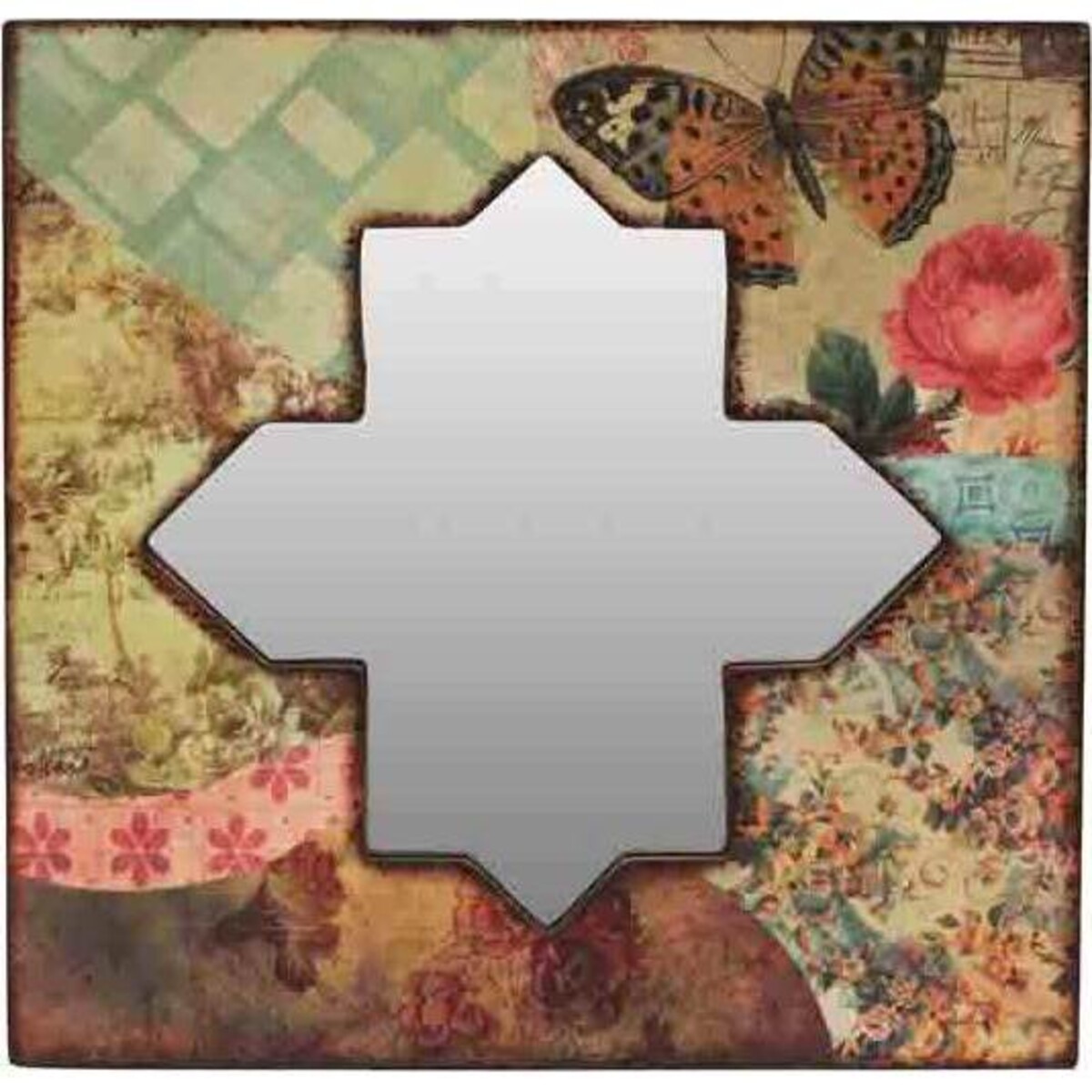 Mirror Butterfly Collage is a square shaped mirror framed with dainty and refreshingly aesthetic designs. The edges and borders of the mirror is embellished with the collage of nature inspired images and picture. The lovely ensemble of colourful butterfly and floral accents mainly completes this wall d_cor.