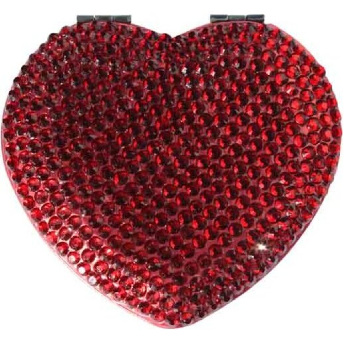 Red and heart shaped compacts make fashion statement. The fiery Mirror Compact - Bling Red is a stylish accessory made from metal and faux bling.