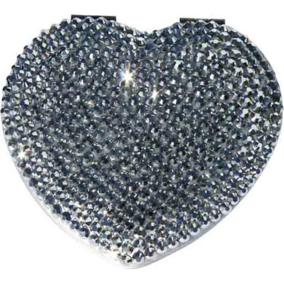 The heart shaped Mirror Compact - Bling Silver is crafted from high quality metal materials. It is light yet durable in construction. Accentuating the heart metal is beads of tiny faux gems with glittering effects. This eye catching accessory embellished with faux stones in silver hue highlights neutral yet classy tone.