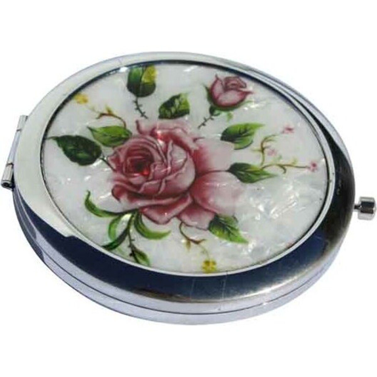 This accessory is the perfect must-have for women to bring around in attending special events or occasions or just every ordinary day. The mirror compact showcases the lovely, classic beauty of a rose in vivid details. The full bloomed rose and rosebud prints are painted in deep red while the thorny stems and leaves are in variety of green shades. It occupies the central part of the compact highlighted with the white background in pearl-like texture. The circle-shaped Mirror Compact - Pearly Rose accessory is designed with the silver borders in shiny effect with the easy to open push locket. It is relatively thin which fits perfectly and practically even in small or sexy pouches and bags. Aside from its stylish aesthetics, it is a functional accessory which is also an ideal gift-giving choice.