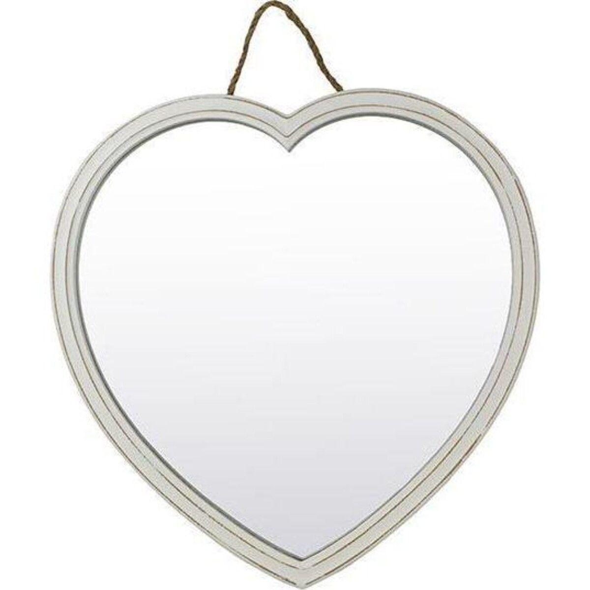 The mirror Corazon is a heart shaped mirror with a height of 39 cm and width of 39 cm, which will help it to dominate the wall with its presence lending it more spaciousness and well as helping it brighten up too. Place it opposite lamps and make sure to hang it opposite natural sources of light to expand the illusion of space. The frame has shabby chic written all over with the rubbed paint effect and the utterly shabby chic design of its rough and distressed wood like looks.