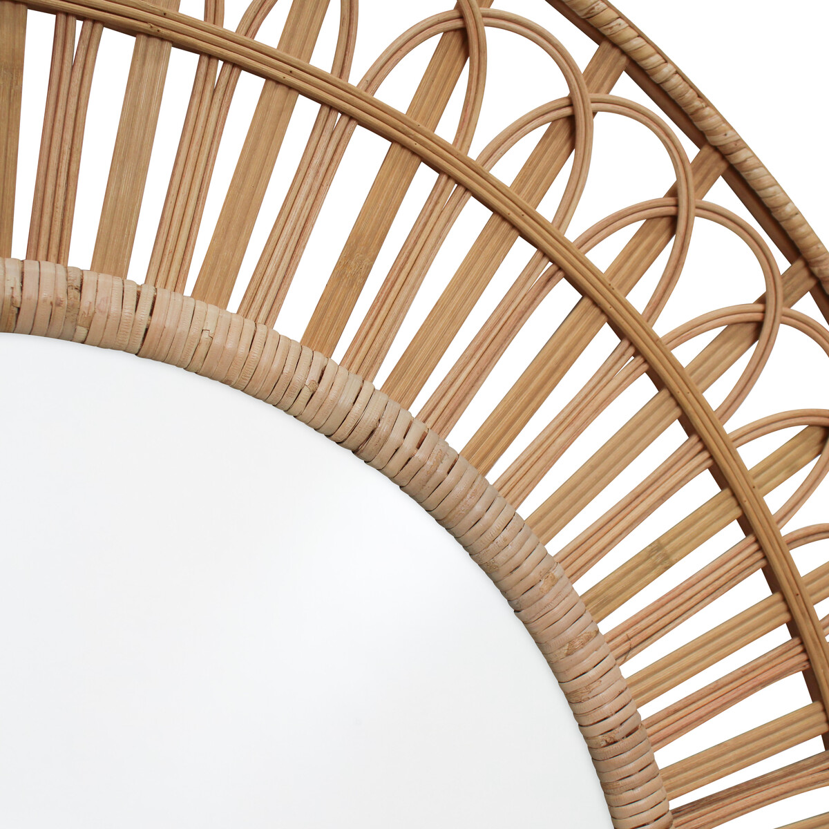 With this Mirror Cove Natural showcasing a lovely, moderately large sized mirror which oozes of elegance and aesthetic finesse, this mirror would appeal greatly to the natural decorative and practically functional decorative sensibilities of all of your customers given its immensely appealing design. At the centre is a beautiful, highly reflective premium quality glass while intricately woven around this in a lovely pattern while forming a spherical shape is the use of 100% organic rattan material. It measures 100 centimetres across in length, 3 centimetres in thickness and 100 centimetres across in height.