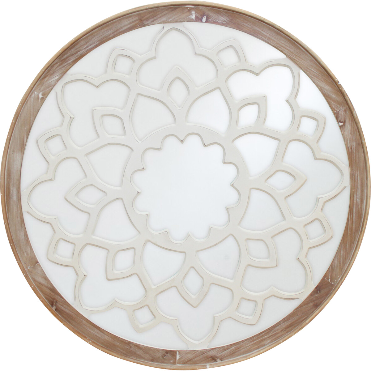 This large round cottage/country distressed wall mirror has an uncommon look and can be used in farmhouse decor as an accent piece or as a focal point above the mantel. It will provide the illusion of a larger space; brighten up a room with its reflective shine while also adding a touch of sophisticated style. This is a multi-purpose wonder that will create a light and spacious feel and is versatile enough to use as a bathroom vanity, at the office or anywhere in the home!
