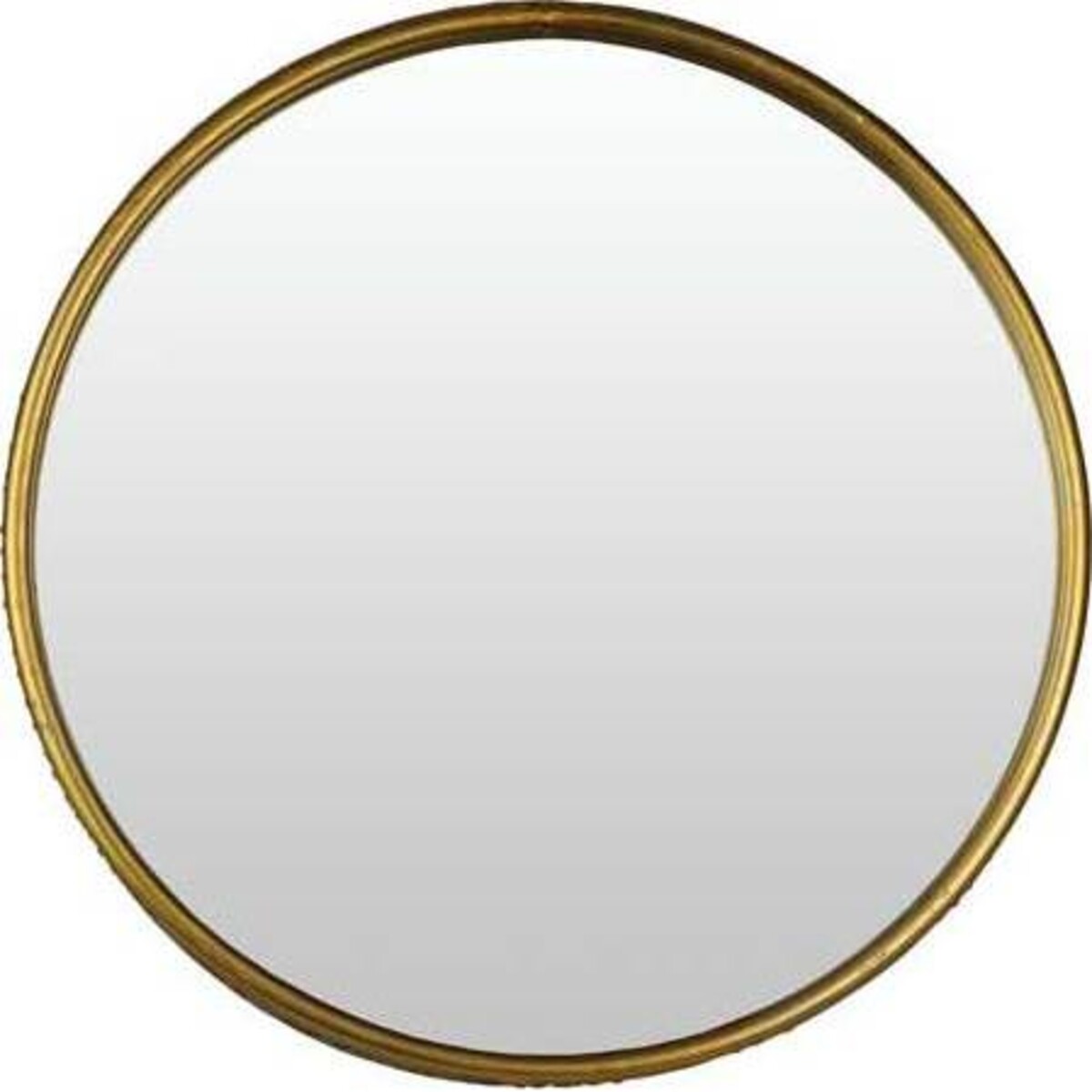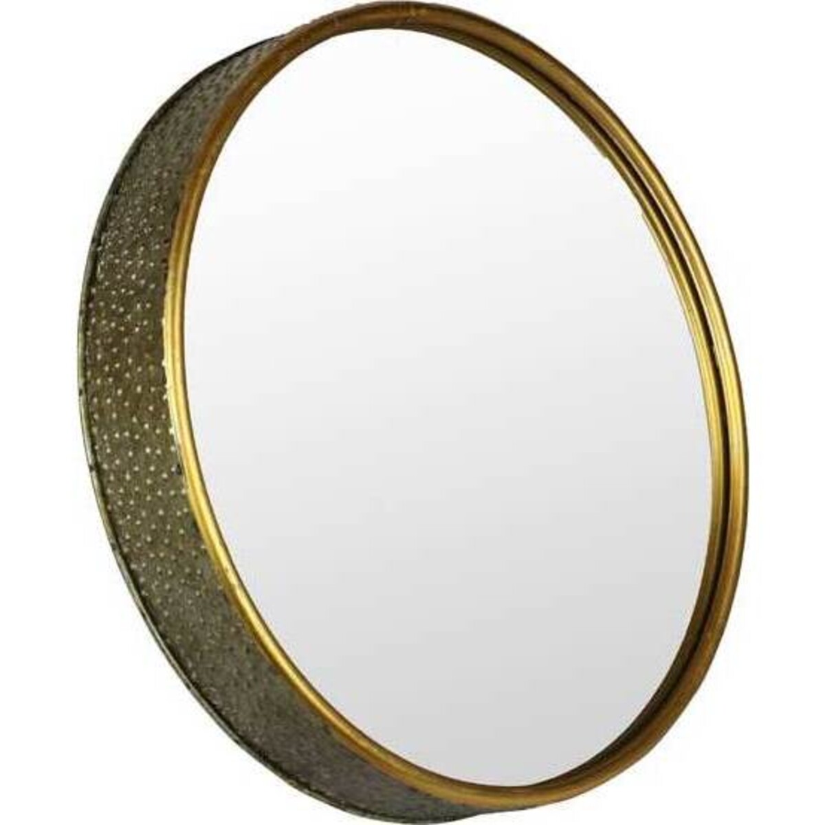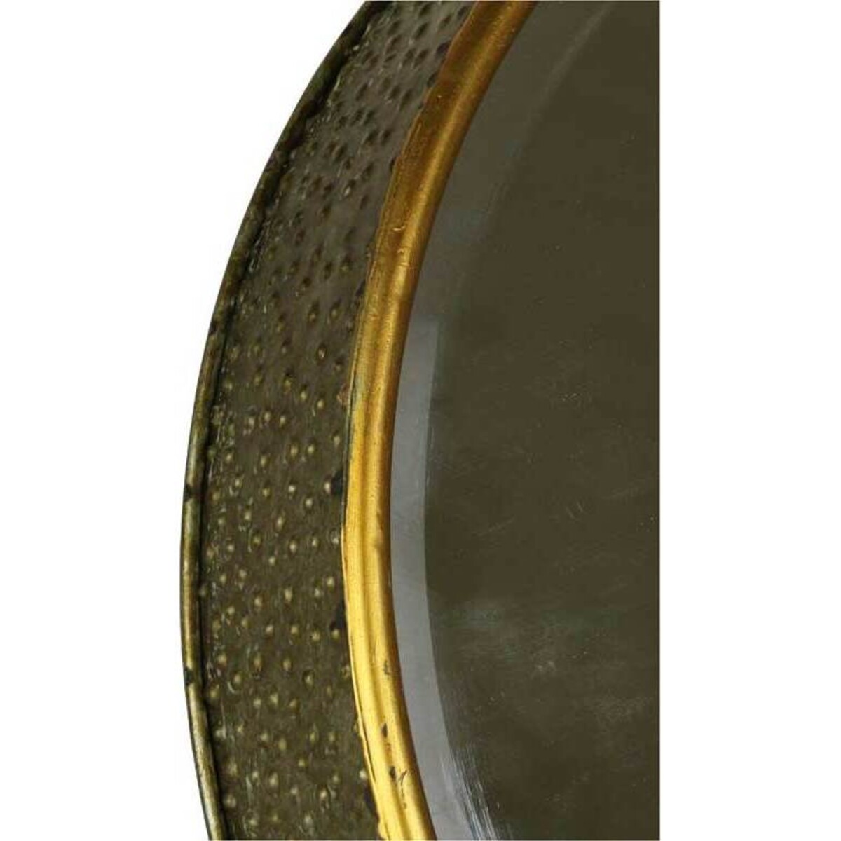 Any modern home loves to add mirrors in its interiors as it helps build in more brightness and a feel of dimensional depth. This round mirror from Lavida has a metal rim that is given a golden finish that shines like real brass. The golden rim of the mirror gives its 40 cm diameter more definition while not making it look overly ornate because of the use of gold coloured polish. The subdued styling and quite good looks makes it most suitable for small little vanity areas. Use t in the bedroom to build in some more glamour and make the room come alive with its feminine beauty while look seems to be stuck somewhere in the bygone era. Make this accent work for your vintage feel decor by adding t to the bar are or the dining space - or even the entryway to the home where you may have kept the hat stand or the umbrella stand and bring in the old world feel. You will love the manner in which the piece has been given a smooth metal finish all along its 6 cm thick rim. Would look lovely above the mantle or a console. On taking a closer look one sees the detailing of the rim that is made from reclaimed galvanized metal - a built in rusticity that is the unique part of the design.