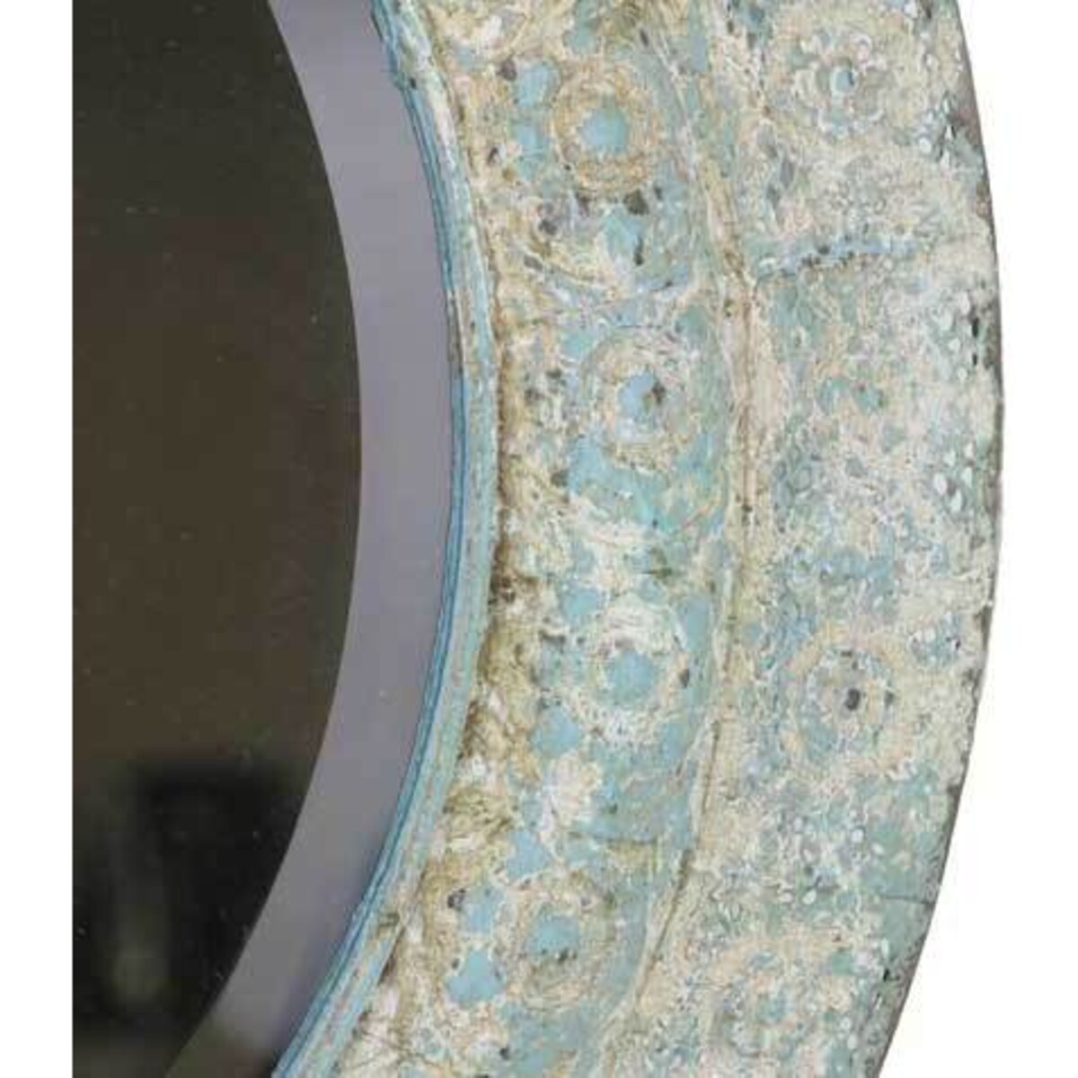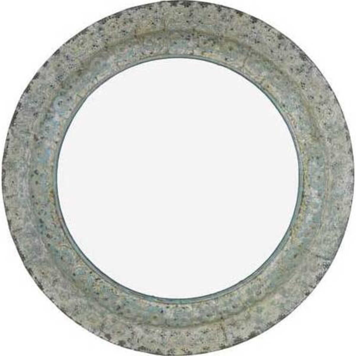 These incredible round mirrors feature a subtle blue filigree design that resembles a natural blue oxidation on metal. You'll want to put these mirrors in every area of your home ranging from your bathroom to your foyer to the garage. They're so fantastic they'll fit in everywhere. Many will think you picked them up at an antique store and paid a high price tag, but only you'll truly know where you got them and how little you actually paid. Don't worry, we won't tell if you won't.