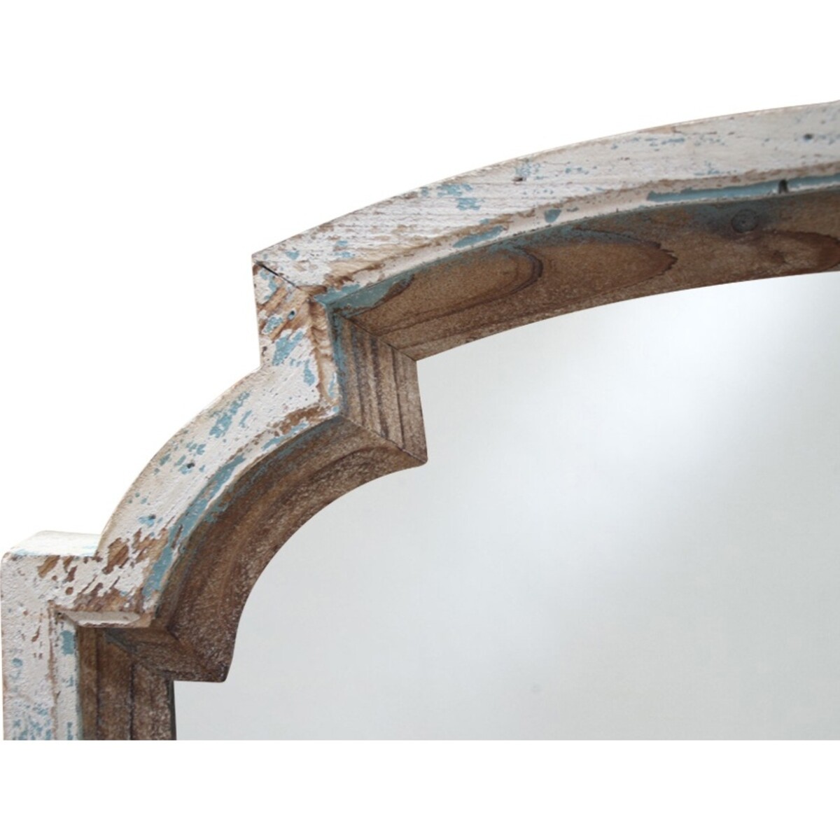 Soft white paint peeps right through the aged wood exterior. The subtle hint of colour adding to the ageless beauty of this antique piece - the mirrors gracefully adorns the wall in its woody look reminding you the times it may have captured through reflections and images. A perfect means to not just brighten up your interiors but also add that touch of vintage glamour for all kinds of décor spaces.