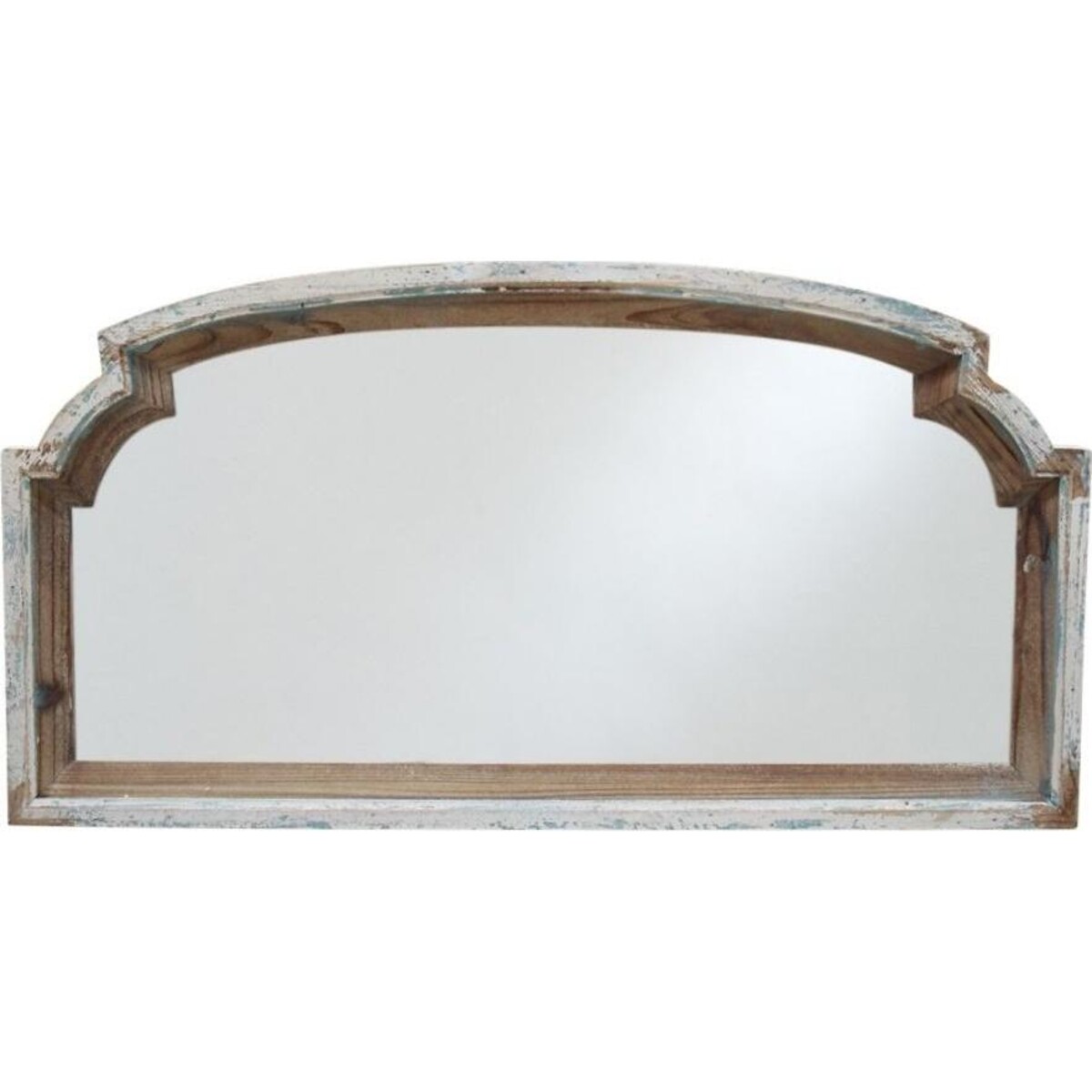 Delight your spaces with the look of vintage chic with a mirror that is simple in its design yet reflecting great quality in its mirror quality and a gracious delicate kind of frame. Made from ageing wood. The sturdy feature of the mirror makes it a wonderful pick for any room of your home - be it the entryway, the bedroom with its dresser that may need a mirror or any such wall that is large and could do with an accent that doubles up functionally too. The wood has been given a weathered look but has a sturdy nature. The colour has been discretely left to look faded and peeling. The frame is curved on top with a few angular details the length and width of the mirrors will make it a great choice for all kinds of wall spaces - large or compact alike. 79 cm in length and 42 cm in width gives it the perfect proportions and dimension to add that touch of vintage magic to any home or space.