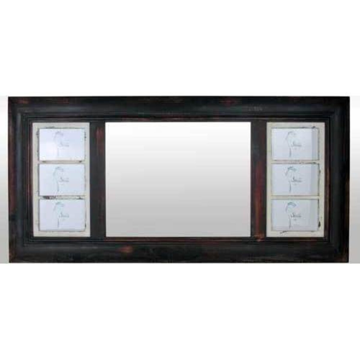 Mirror Inky with Frames features rectangular design consisting of wood, glass and mirror. The entire setup measures 101x48x7 cm and features a central mirror with glass utilized for decorating the flanks on either side of left and right. Wood is applied for the framework, with the finishing being done in dark tone. Homeowners may find this design of mirror useful for interior decoration objectives within large rooms and even along hallways, stairways and other locations. Mirror Inky with frames has an inky appearance and would therefore blend in quite well with a study room or general office setting.