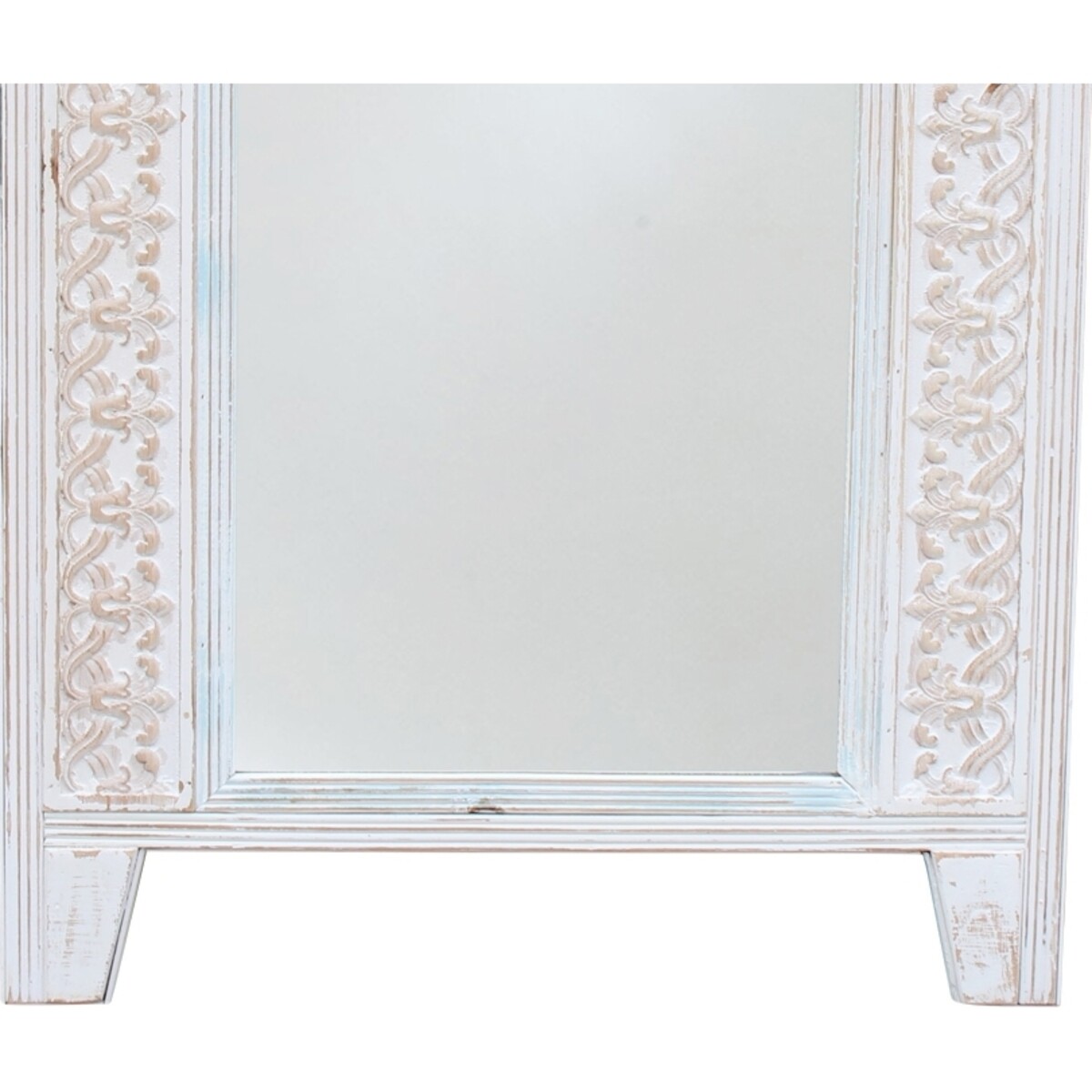 If you happen to be in love with the past and its glorious history of traditional designs that were painstakingly created for the sheer aesthetic value, here is a manorial style mirrors that would please you. The height of the mirrors that ends on top with a tiny shelf like lintel, is all of 180 cm . The width is narrow in comparison at 62 cm and the base of the mirrors has two legs that allows it to be placed along the wall. Great for corridor ends placement or as space divider in large rooms. This is the kind of mirrors you could love to check your entire frame in. the delicate work along the frame replicates a detailed pattern, perhaps reflecting an art deco version. The soft white colour hints at the design details with much efficacy. The frae could be propped on the wall or mounted-in both cases, the balance and the positioning will be viable with the setting. A superb blend of heritage looks with modern practicality makes such ornate mirrors from Lavida seem like a great idea eve for moderately large home where it could be usedin vanity areas or your very own bedroom. The shelf like structure on top could well be used as space to create a lovely display of tiny greens in pots or for curios. There are endless possibilities in display when it comes to stunning pieces such as this.